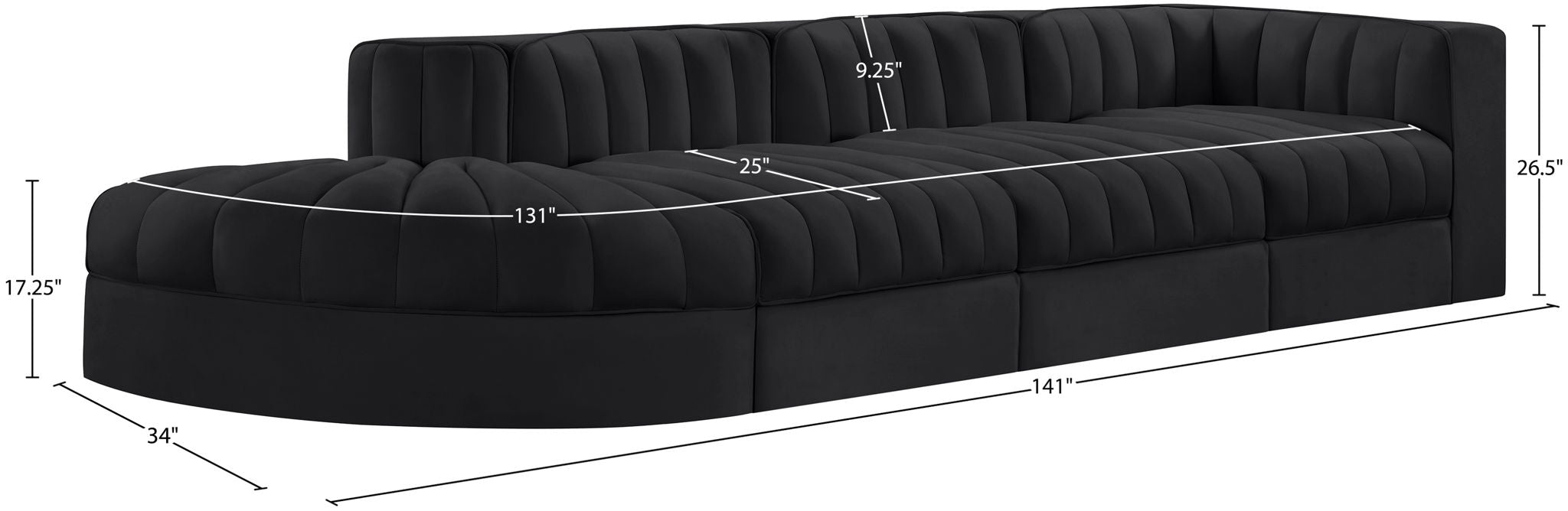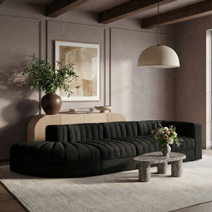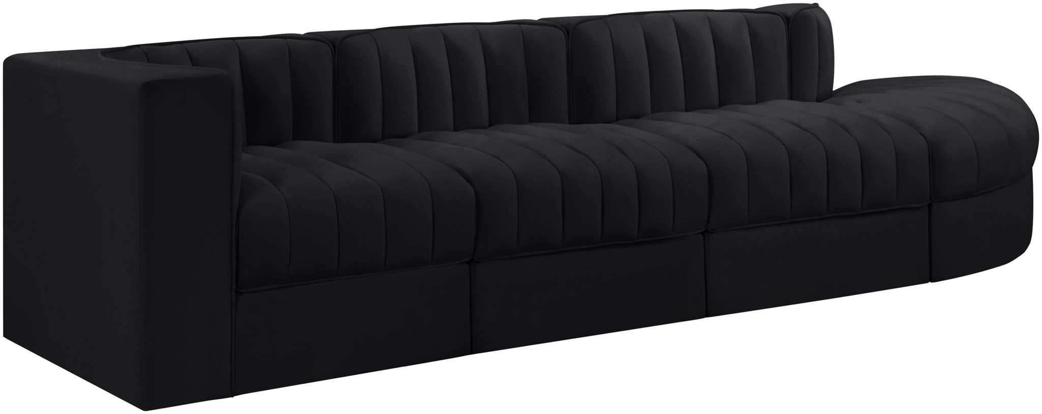 Rummi - Velvet Performance Fabric Upholstered 4 Piece Modular Sectional With Reverse Corner Chair - Black