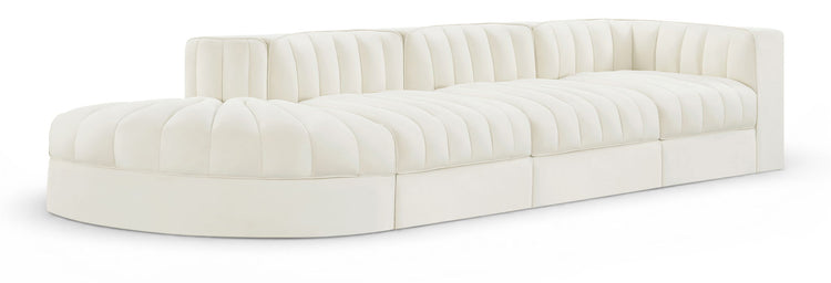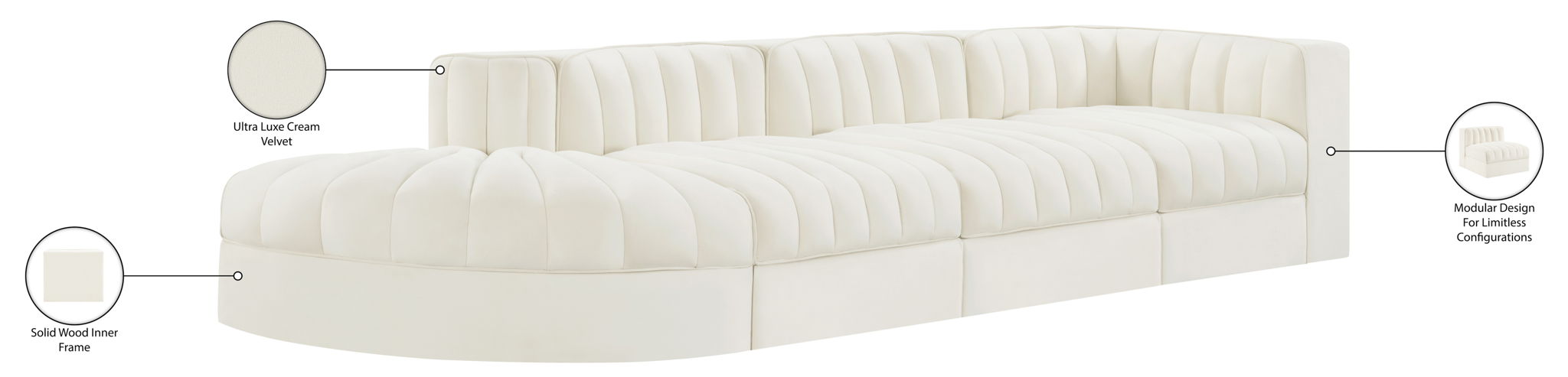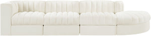 Rummi - Velvet Performance Fabric Upholstered 4 Piece Modular Sectional With Reverse Corner Chair - Cream