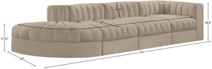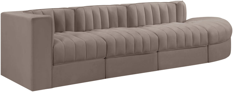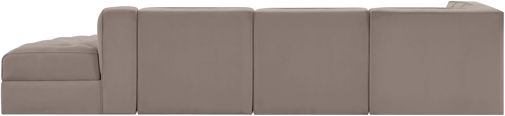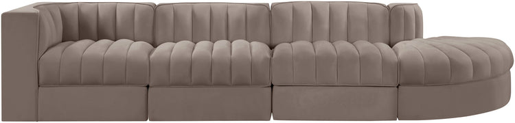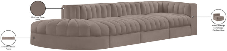 Rummi - Velvet Performance Fabric Upholstered 4 Piece Modular Sectional With Reverse Corner Chair - Taupe