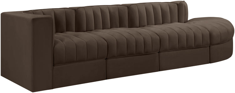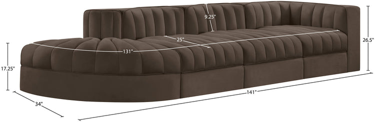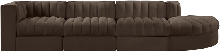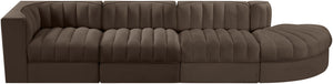 Rummi - Velvet Performance Fabric Upholstered 4 Piece Modular Sectional With Reverse Corner Chair - Brown