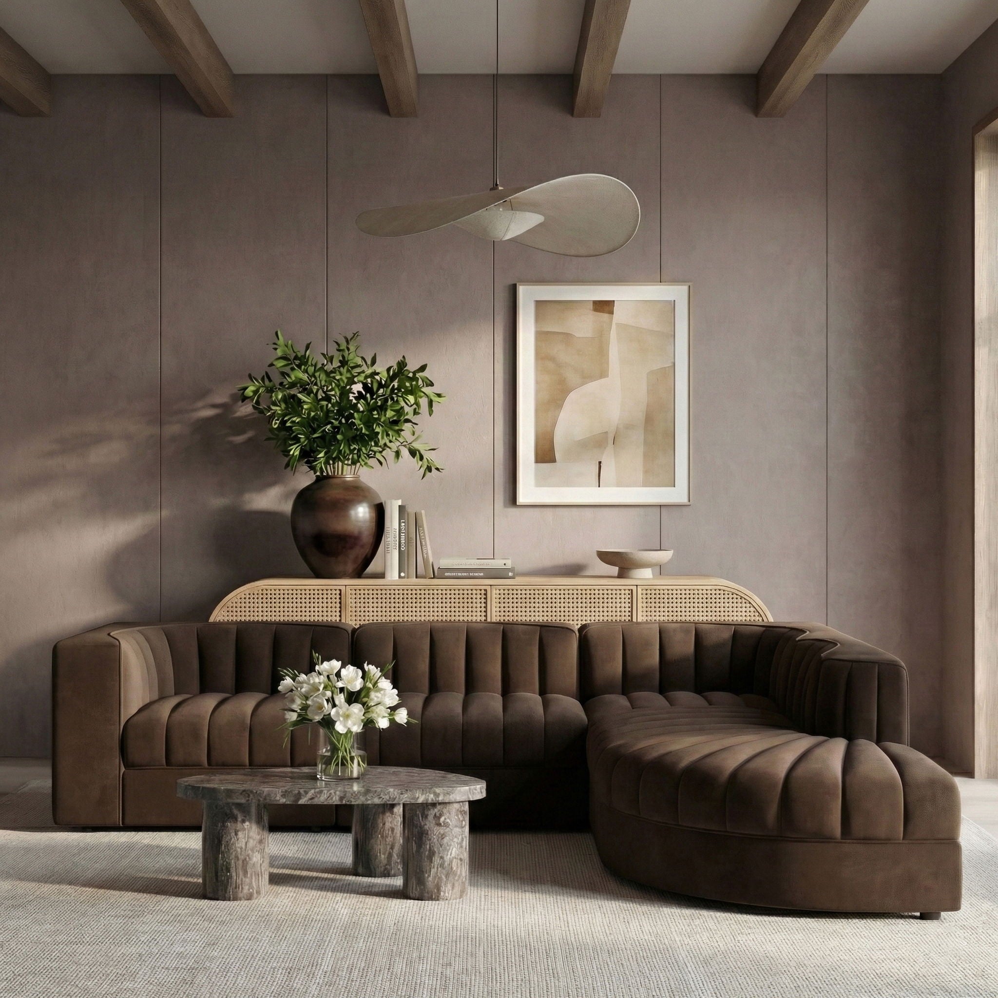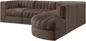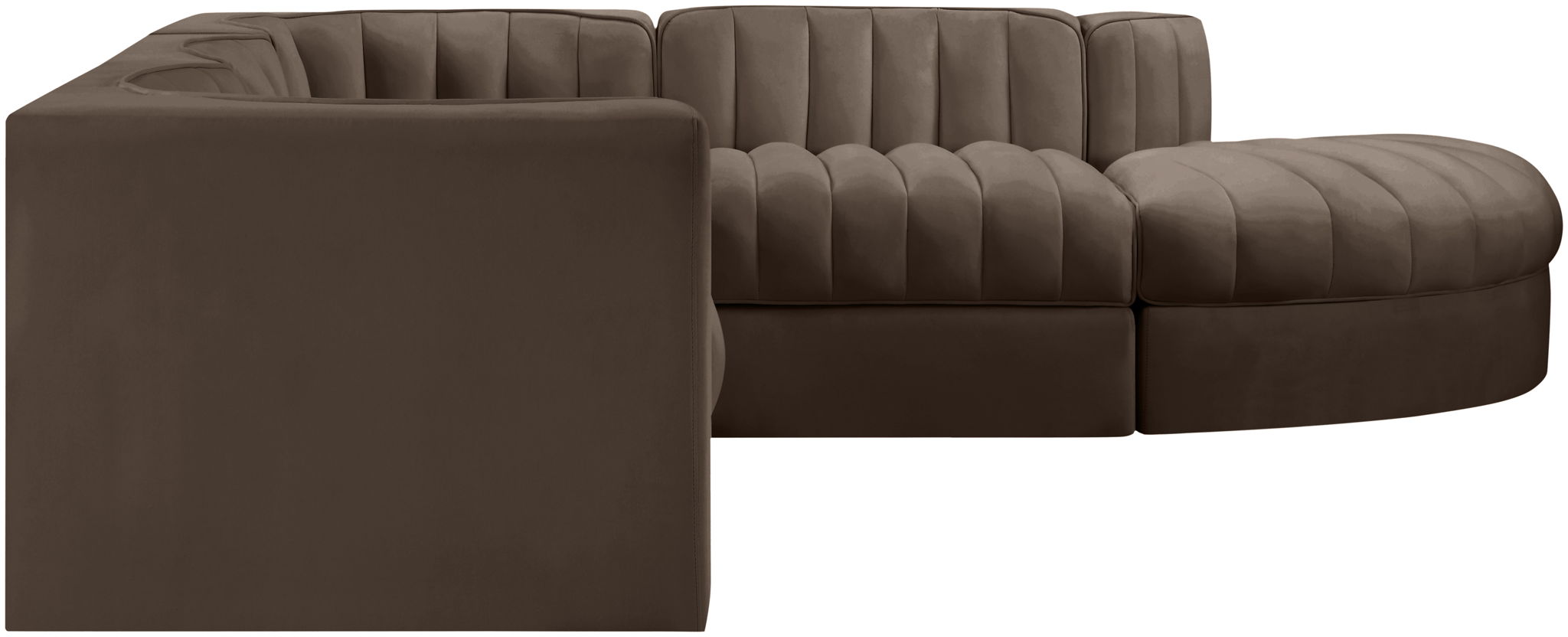Rummi - Velvet Performance Fabric Upholstered 5 Piece Modular Sectional - Brown