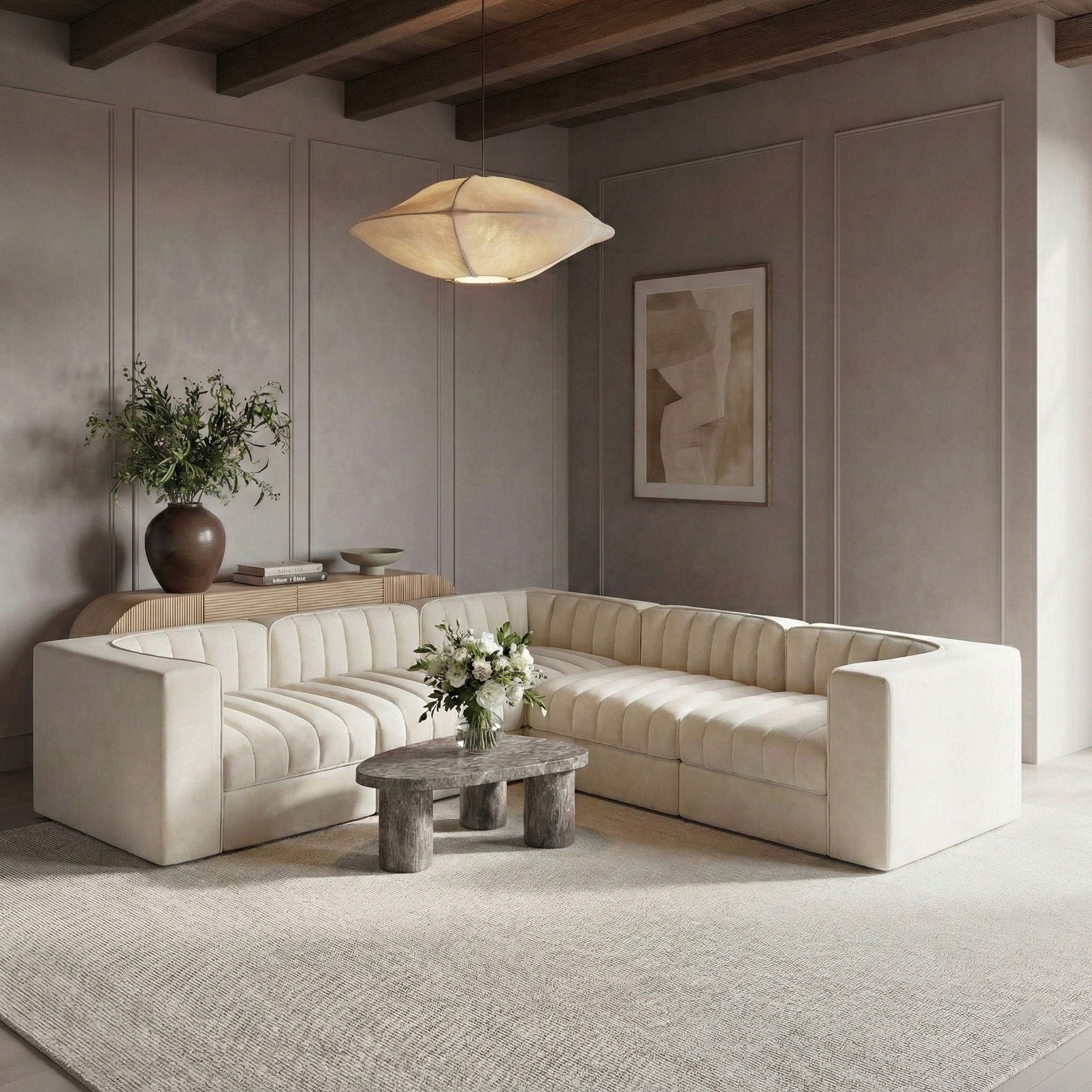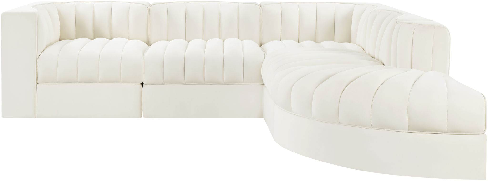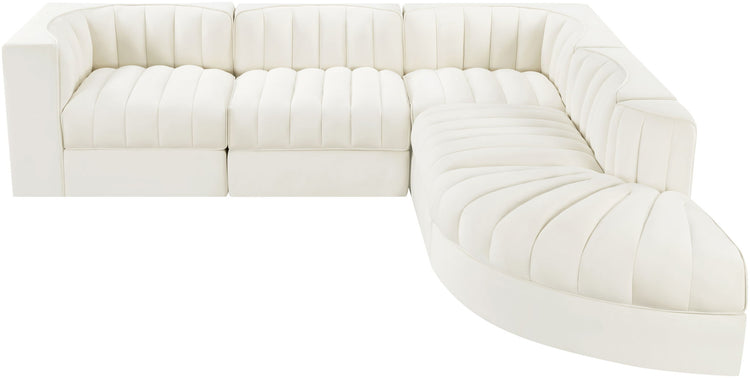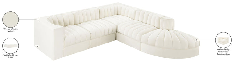 Rummi - Velvet Performance Fabric Upholstered 5 Piece Modular Sectional - Cream