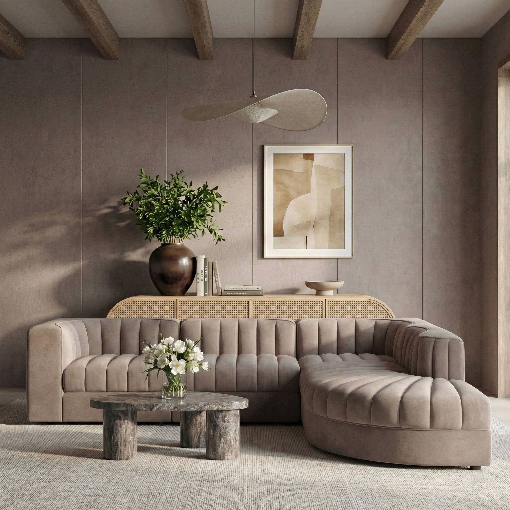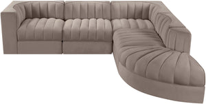 Rummi - Velvet Performance Fabric Upholstered 5 Piece Modular Sectional - Taupe