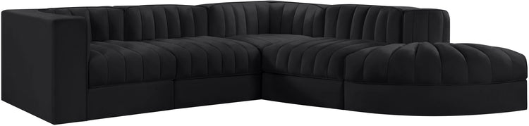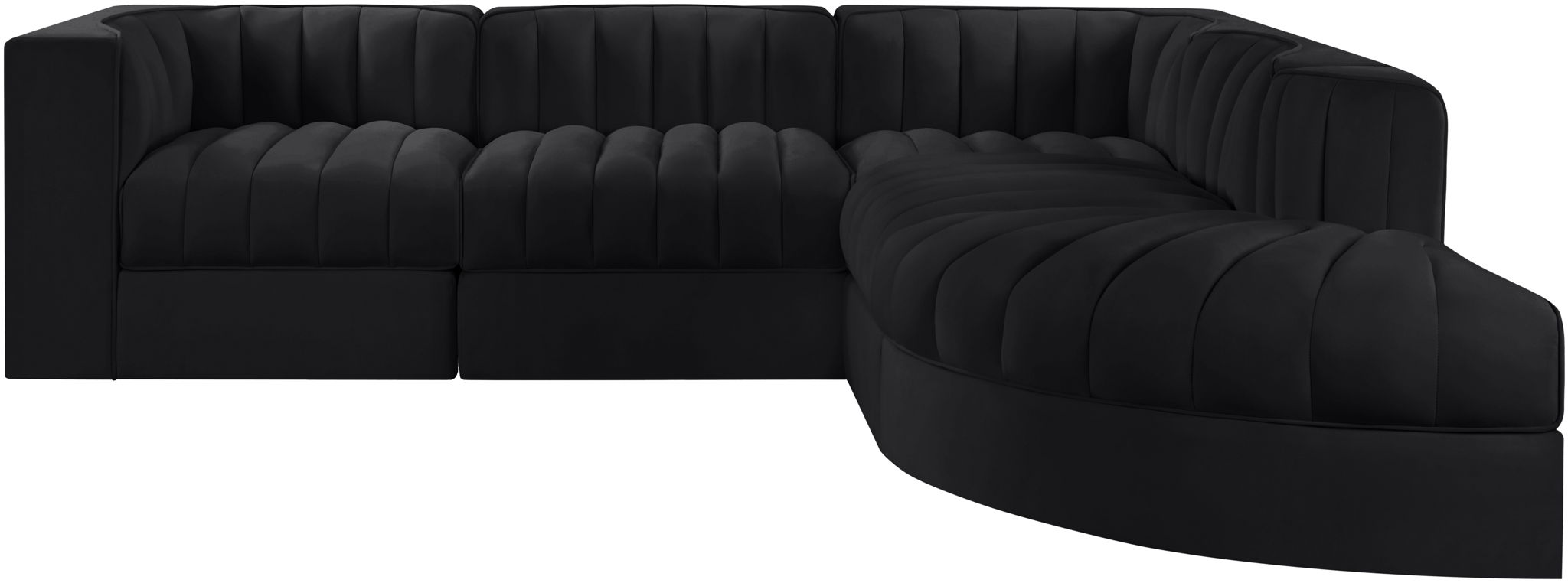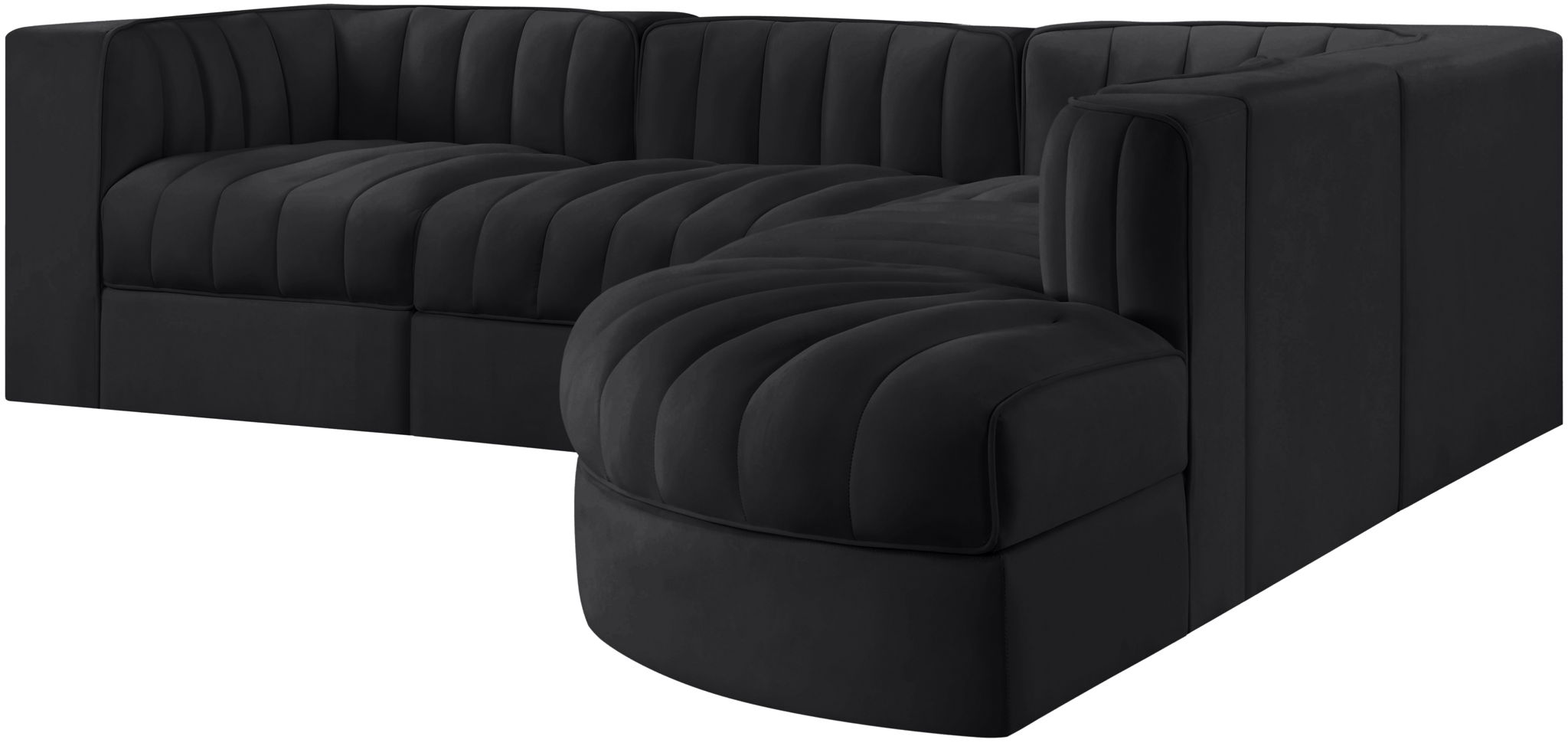 Rummi - Velvet Performance Fabric Upholstered 5 Piece Modular Sectional - Black