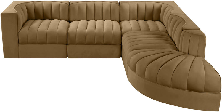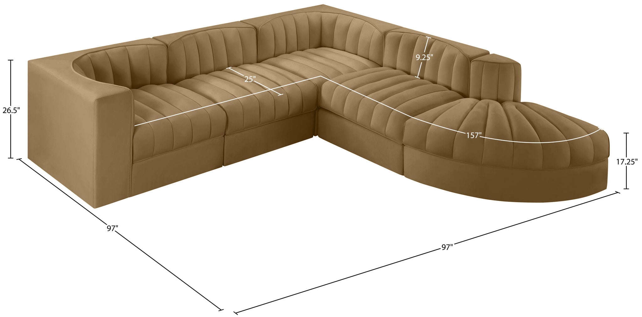 Rummi - Velvet Performance Fabric Upholstered 5 Piece Modular Sectional - Saddle