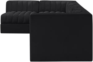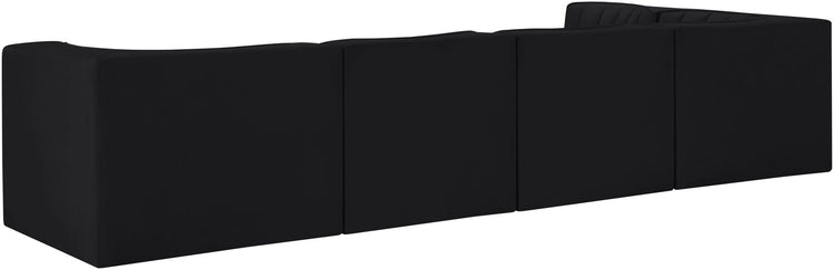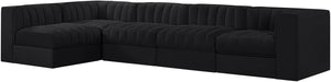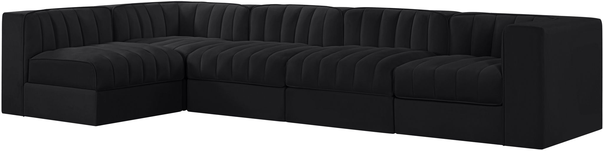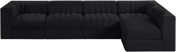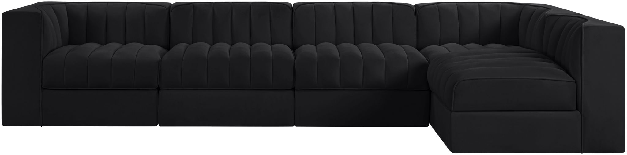 Rummi - Velvet Performance Fabric Upholstered 5 Piece Modular Sectional, L-Shaped (Right) - Black