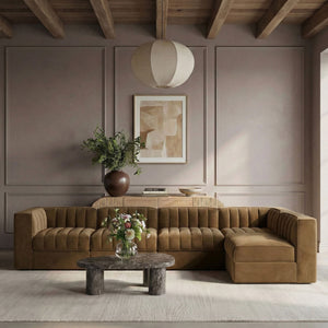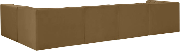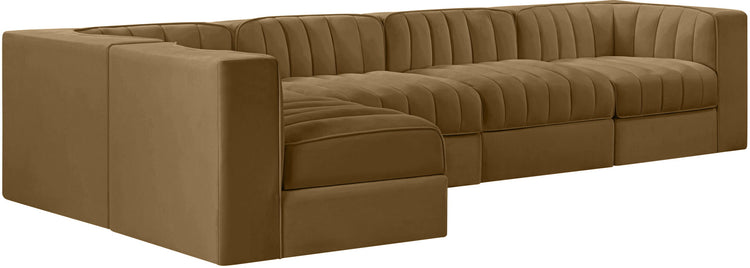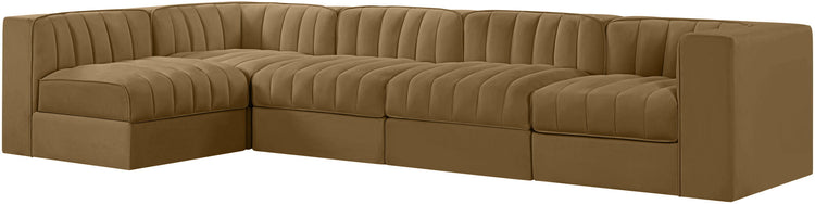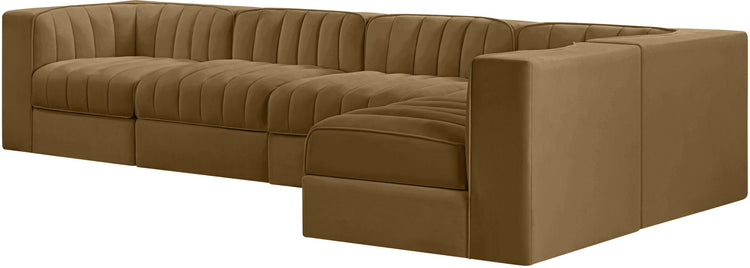 Rummi - Velvet Performance Fabric Upholstered 5 Piece Modular Sectional, L-Shaped (Right) - Saddle
