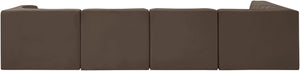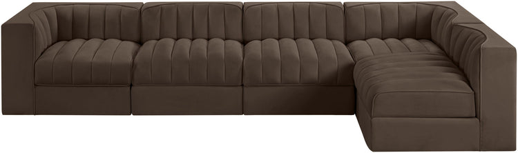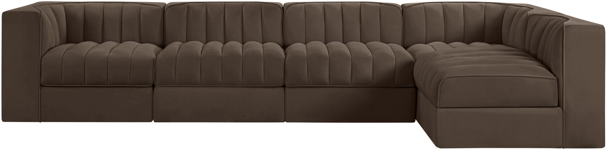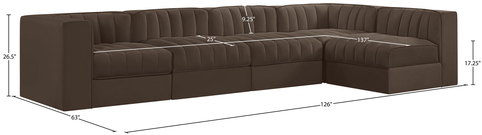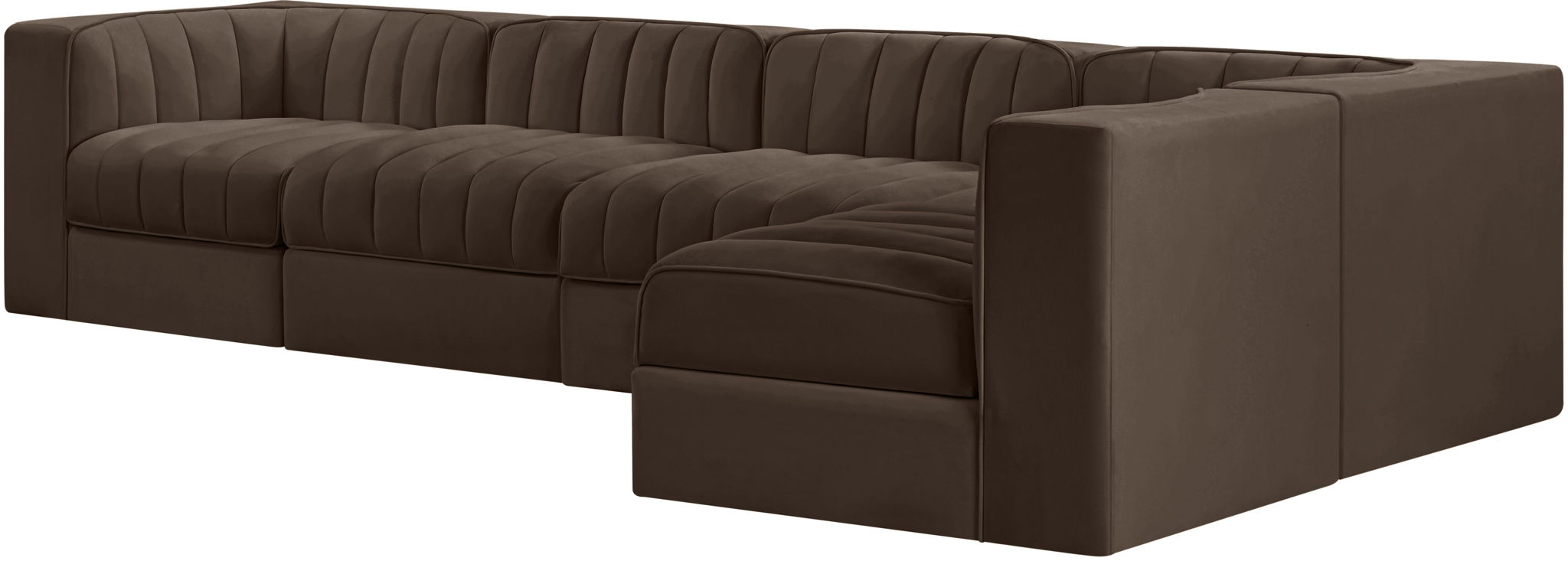 Rummi - Velvet Performance Fabric Upholstered 5 Piece Modular Sectional, L-Shaped (Right) - Brown