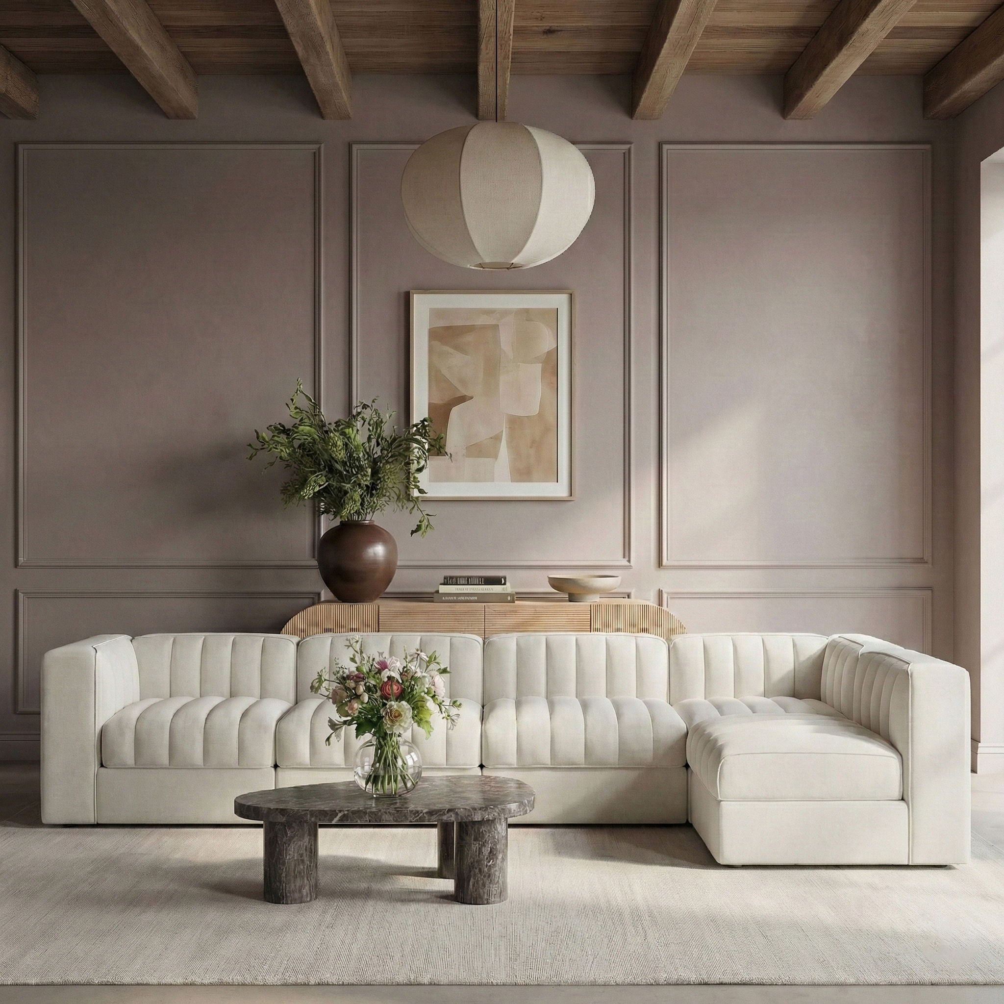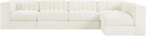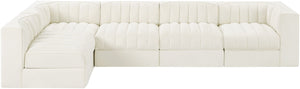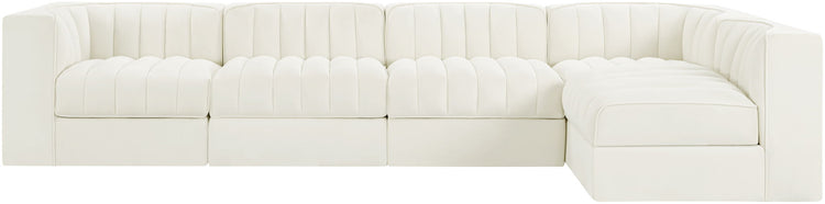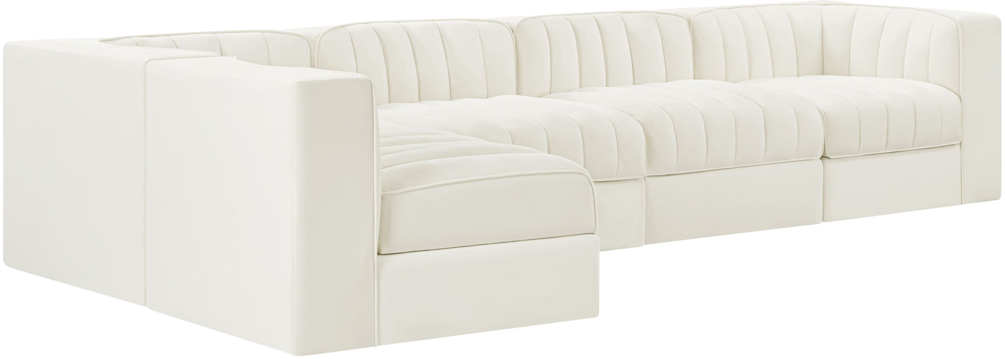 Rummi - Velvet Performance Fabric Upholstered 5 Piece Modular Sectional, L-Shaped (Right) - Cream