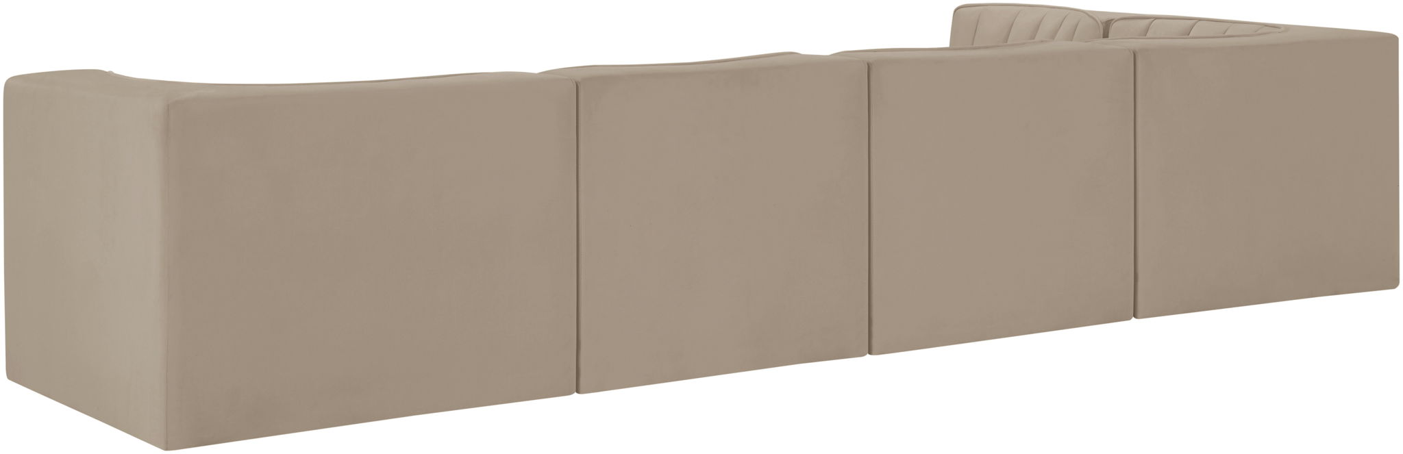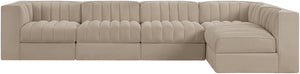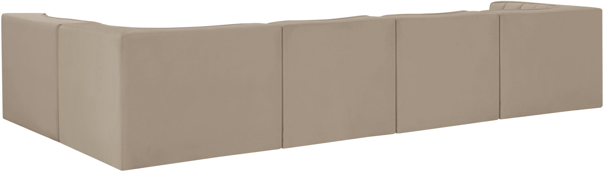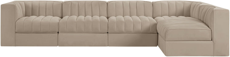 Rummi - Velvet Performance Fabric Upholstered 5 Piece Modular Sectional, L-Shaped (Right) - Beige