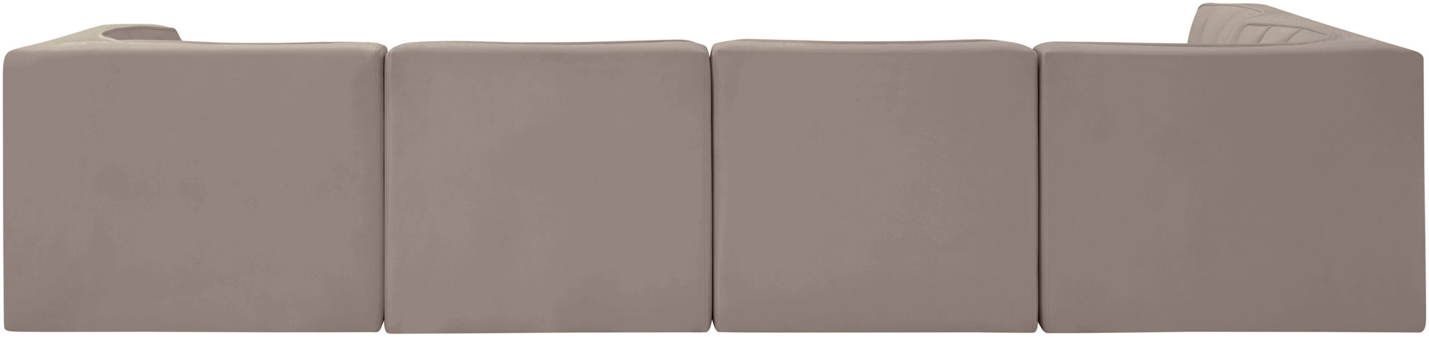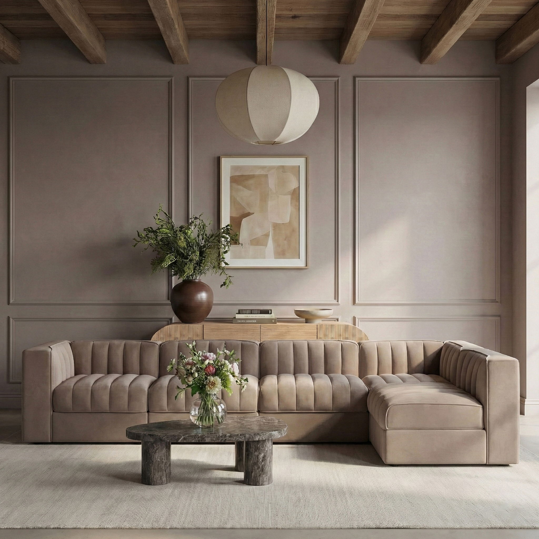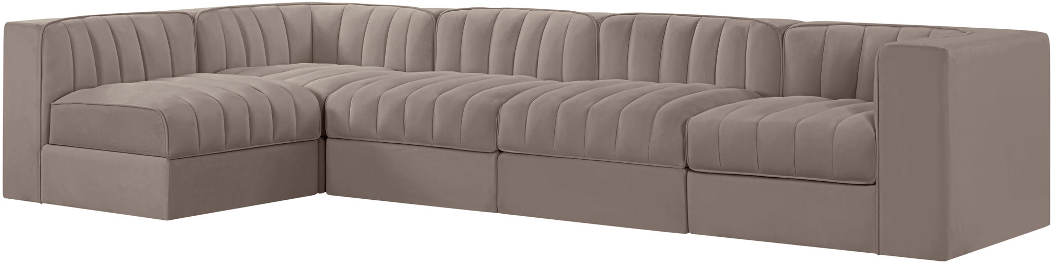 Rummi - Velvet Performance Fabric Upholstered 5 Piece Modular Sectional, L-Shaped (Right) - Taupe