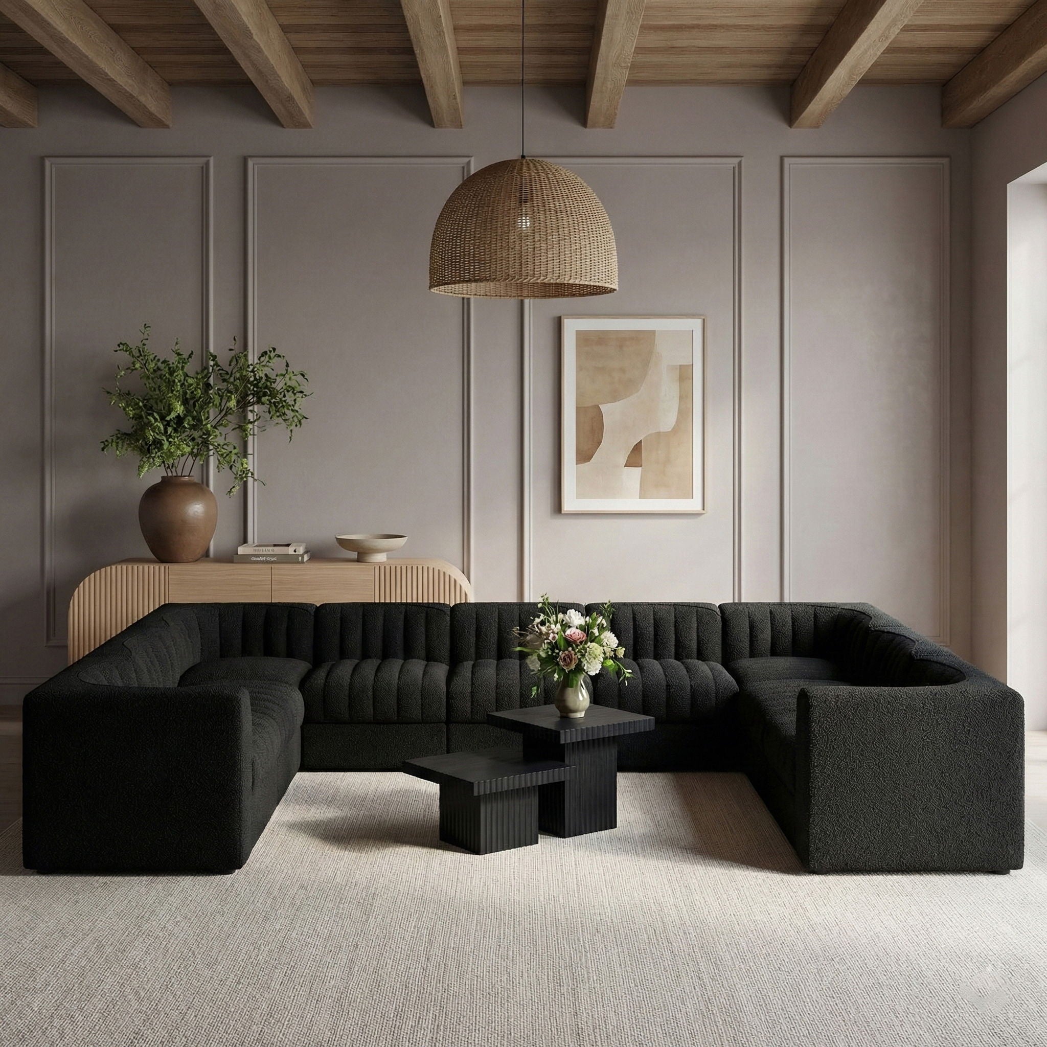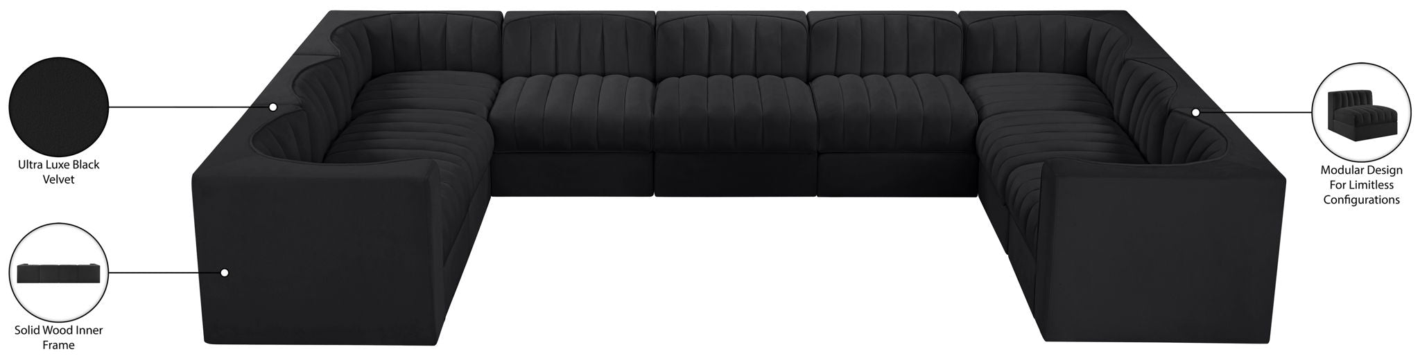 Rummi - Velvet Performance Fabric Upholstered 9 Piece Modular Sectional - Black