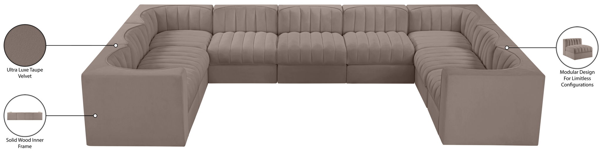 Rummi - Velvet Performance Fabric Upholstered 9 Piece Modular Sectional - Taupe