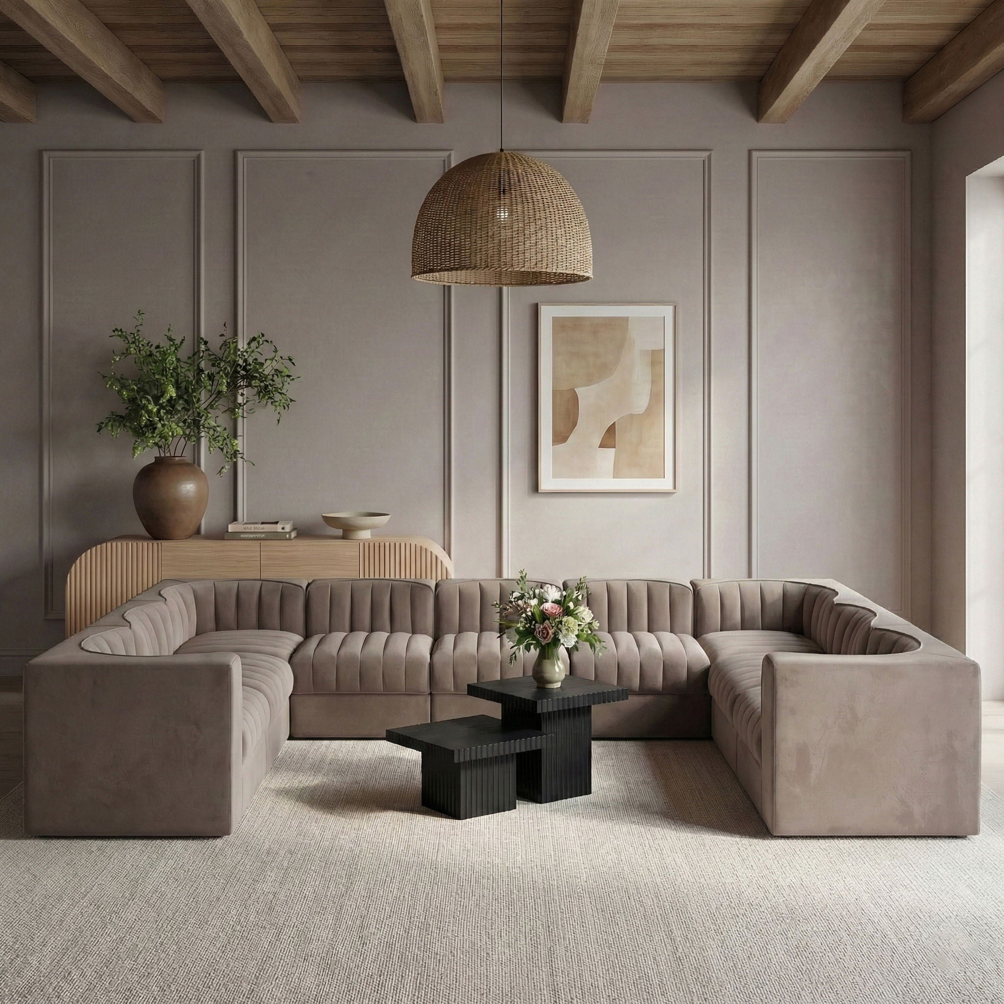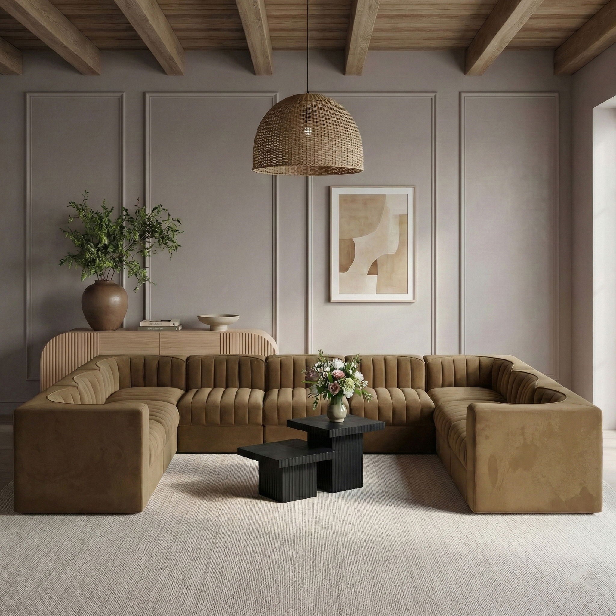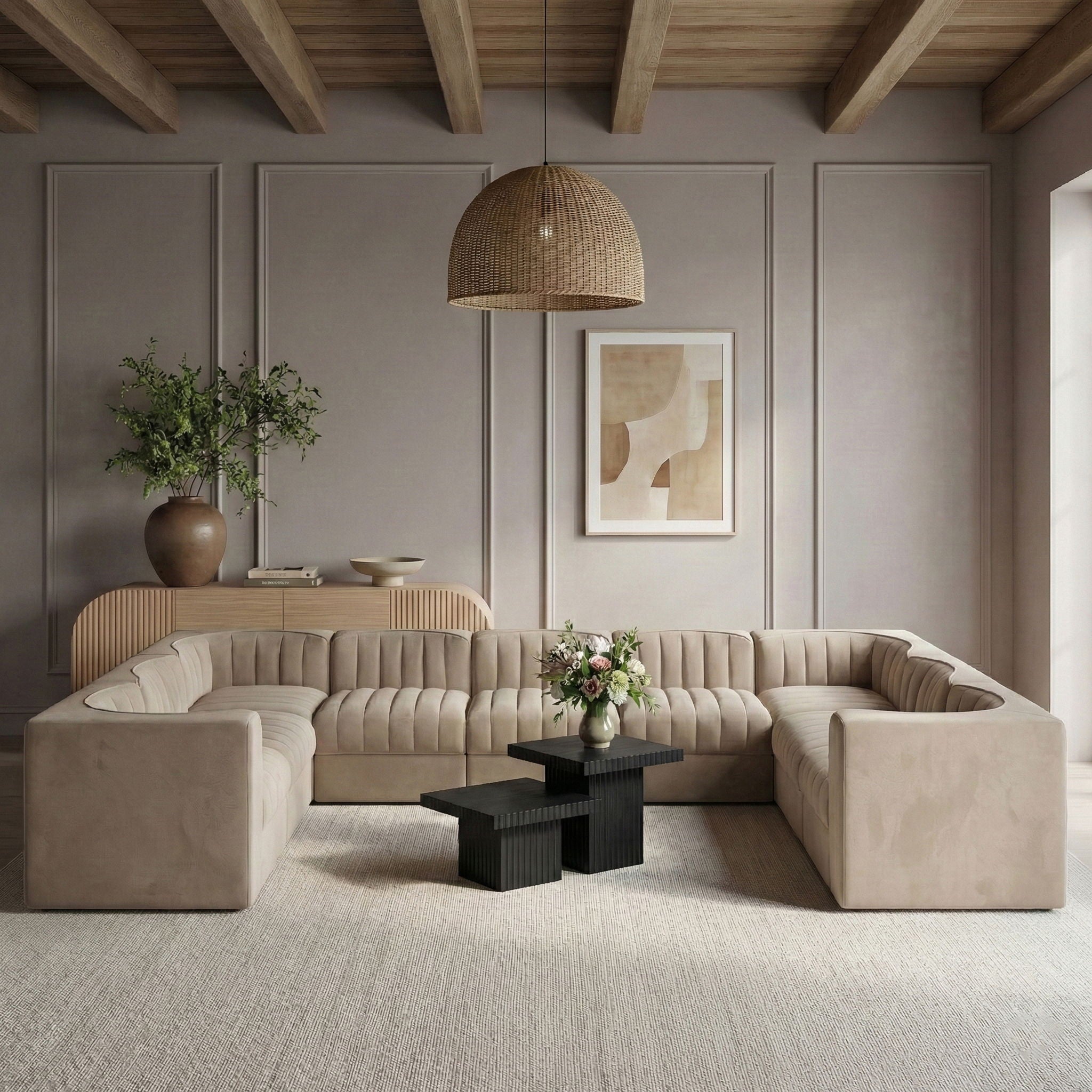 Rummi - Velvet Performance Fabric Upholstered 9 Piece Modular Sectional - Beige