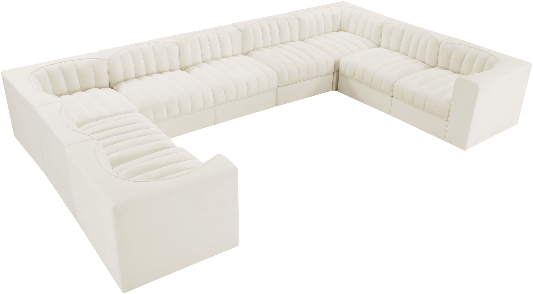 Rummi - Velvet Performance Fabric Upholstered 9 Piece Modular Sectional - Cream