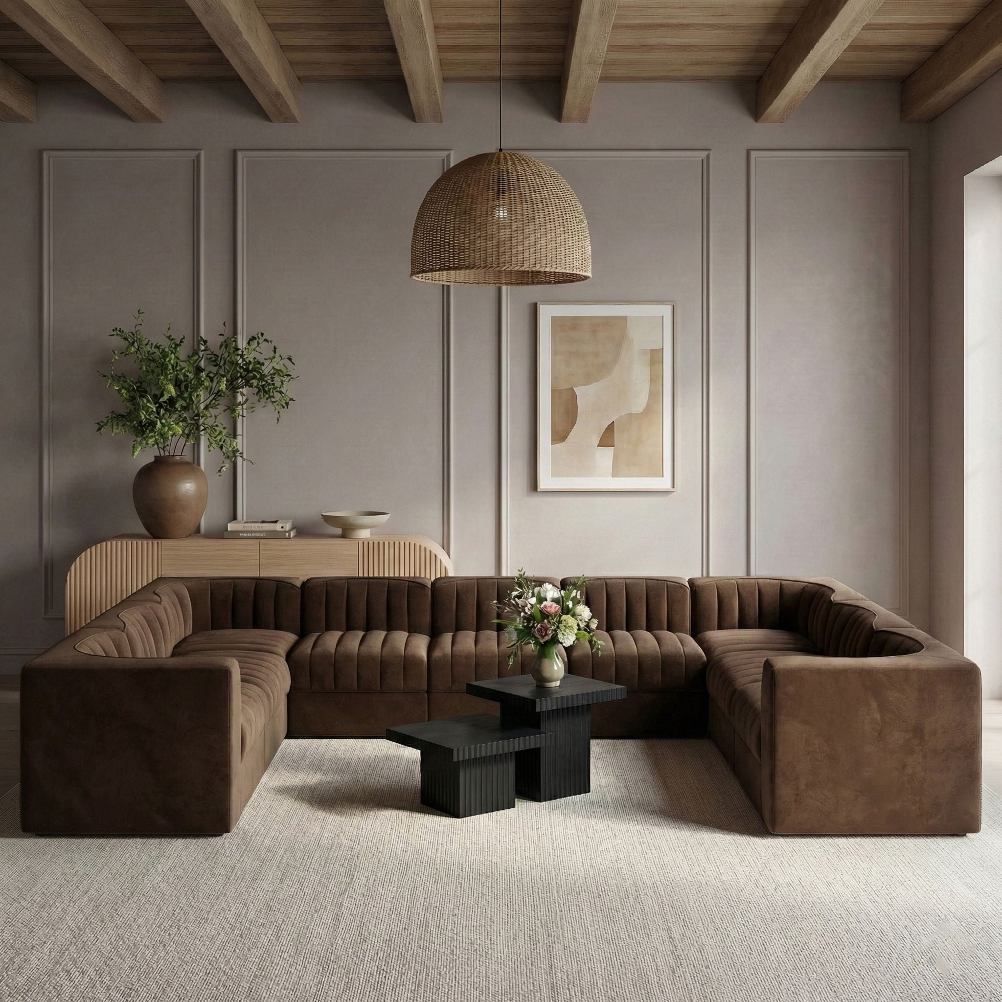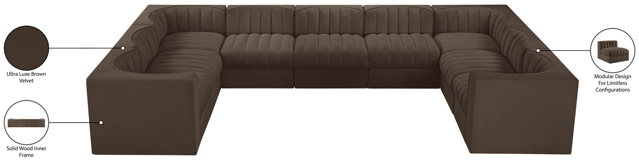 Rummi - Velvet Performance Fabric Upholstered 9 Piece Modular Sectional - Brown