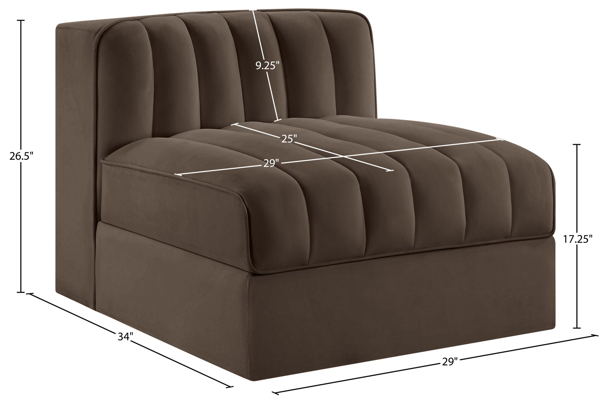 Rummi - Velvet Performance Fabric Upholstered Modular Armless Chair - Brown