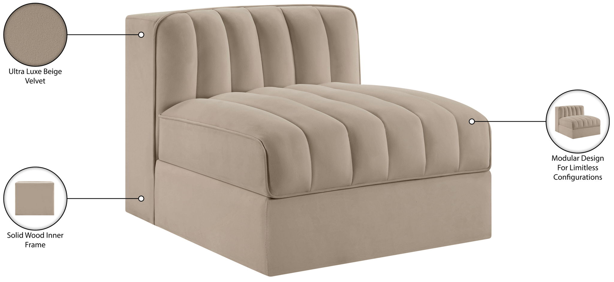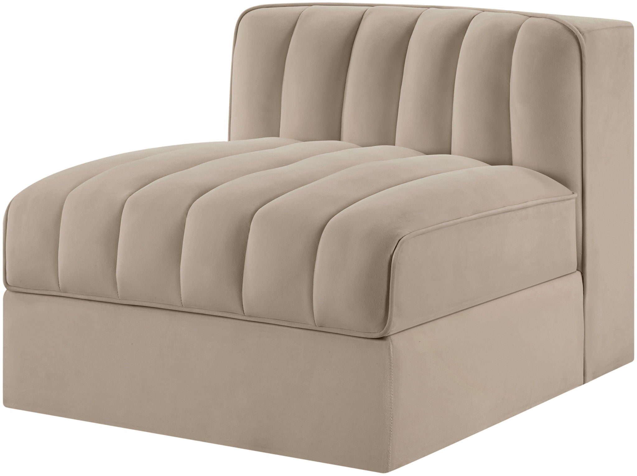 Rummi - Velvet Performance Fabric Upholstered Modular Armless Chair - Beige