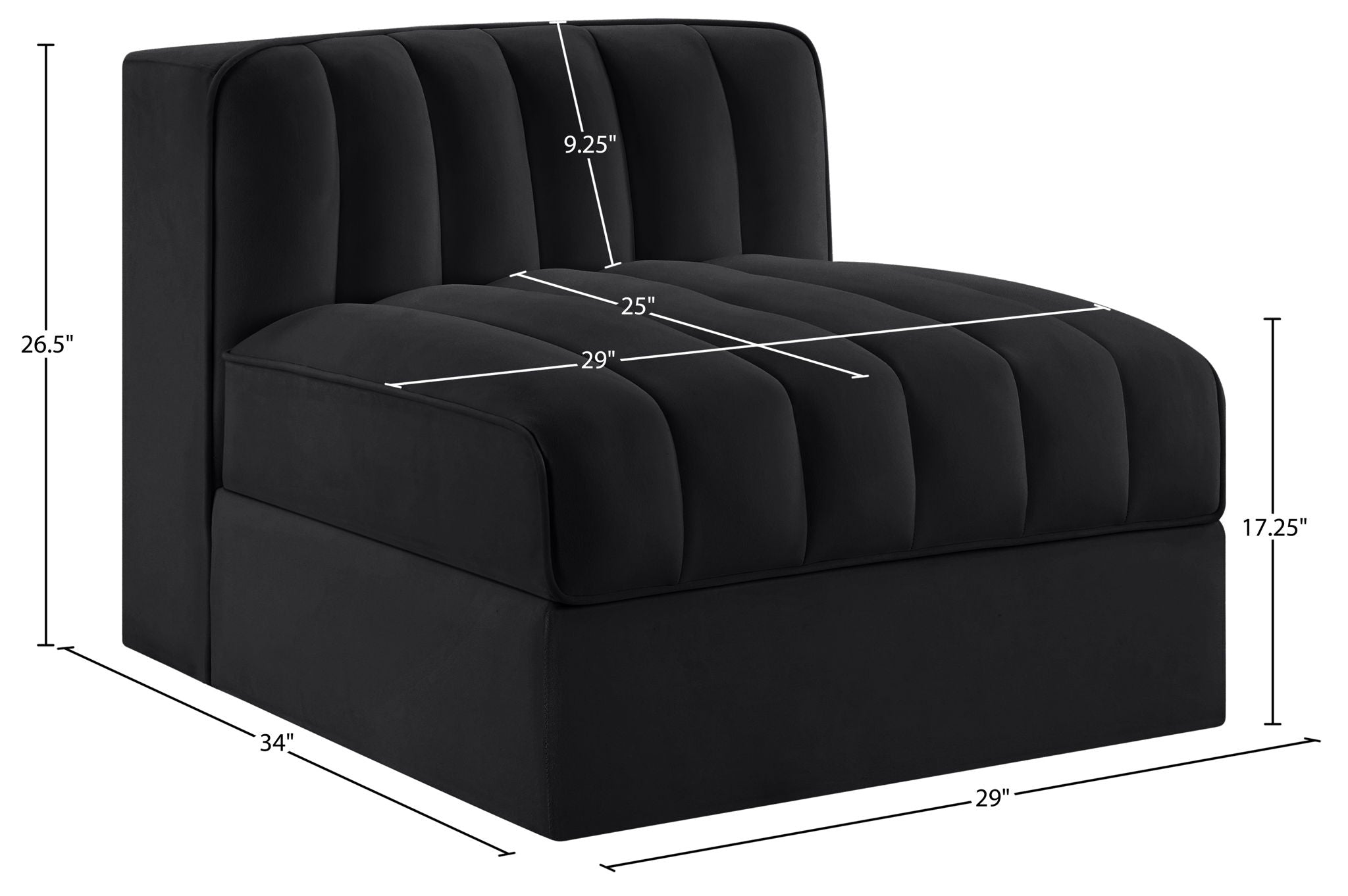 Rummi - Velvet Performance Fabric Upholstered Modular Armless Chair - Black