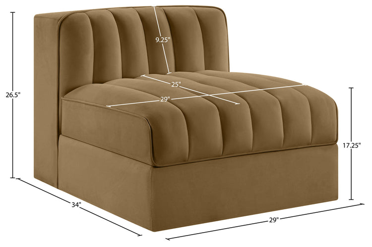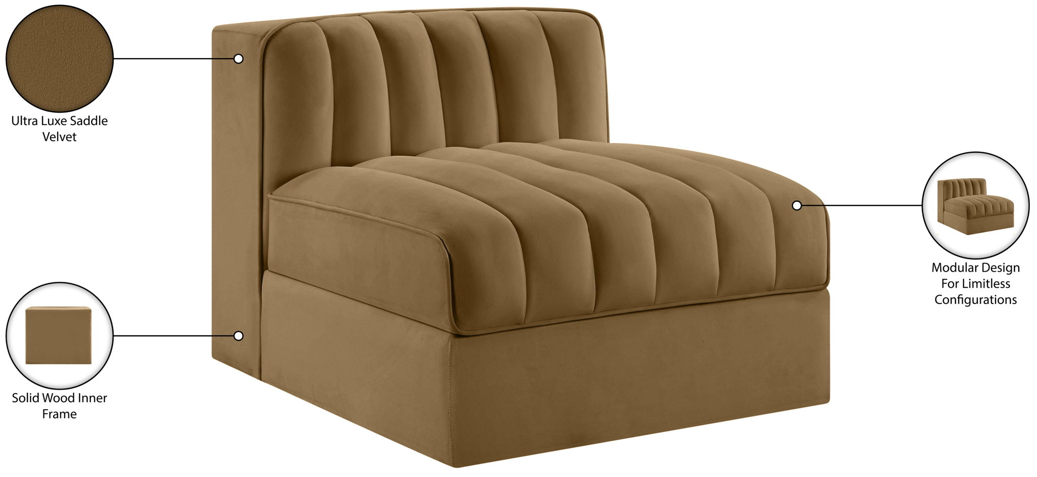 Rummi - Velvet Performance Fabric Upholstered Modular Armless Chair - Saddle