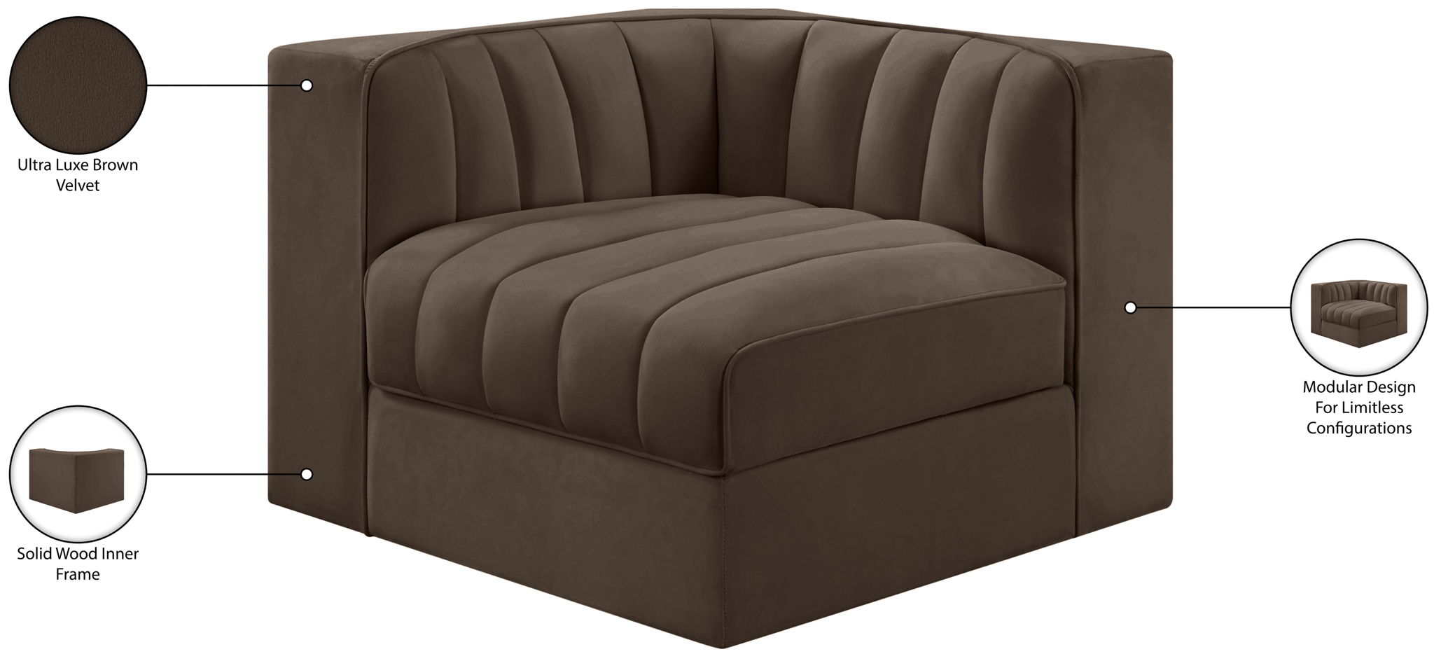 Rummi - Velvet Performance Fabric Upholstered Modular Corner Chair - Brown