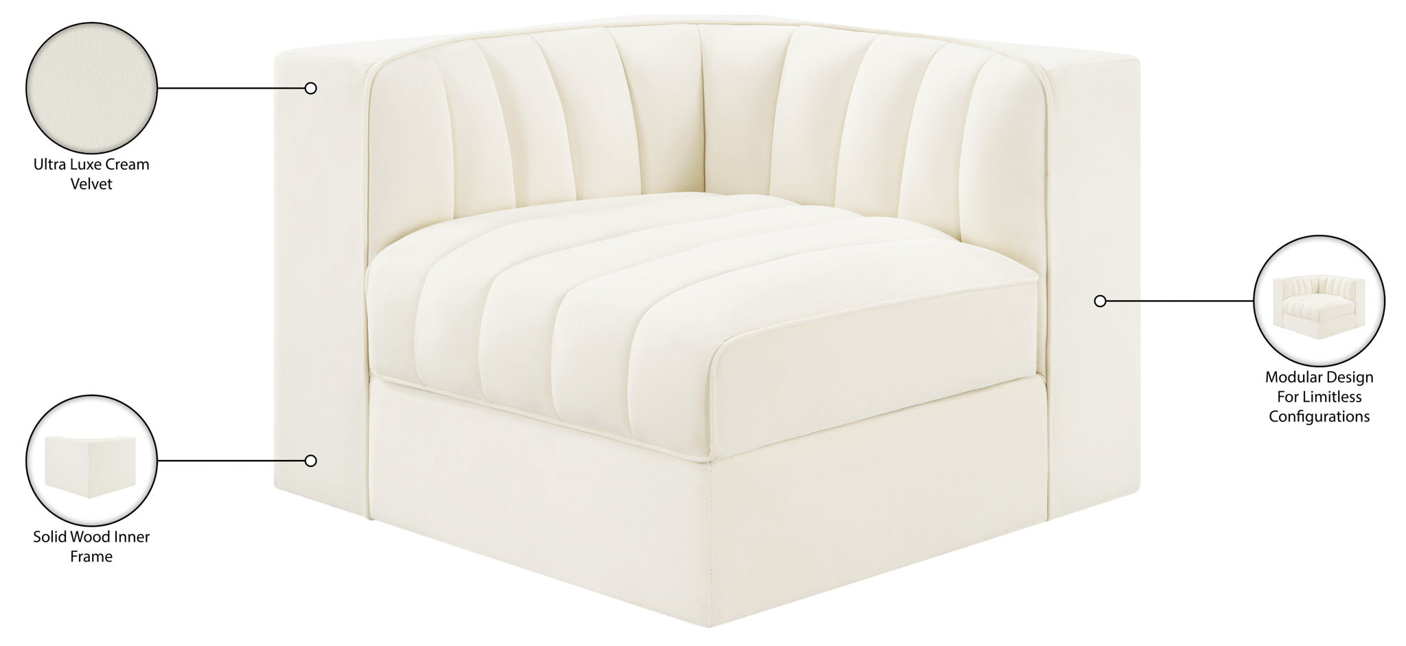 Rummi - Velvet Performance Fabric Upholstered Modular Corner Chair - Cream
