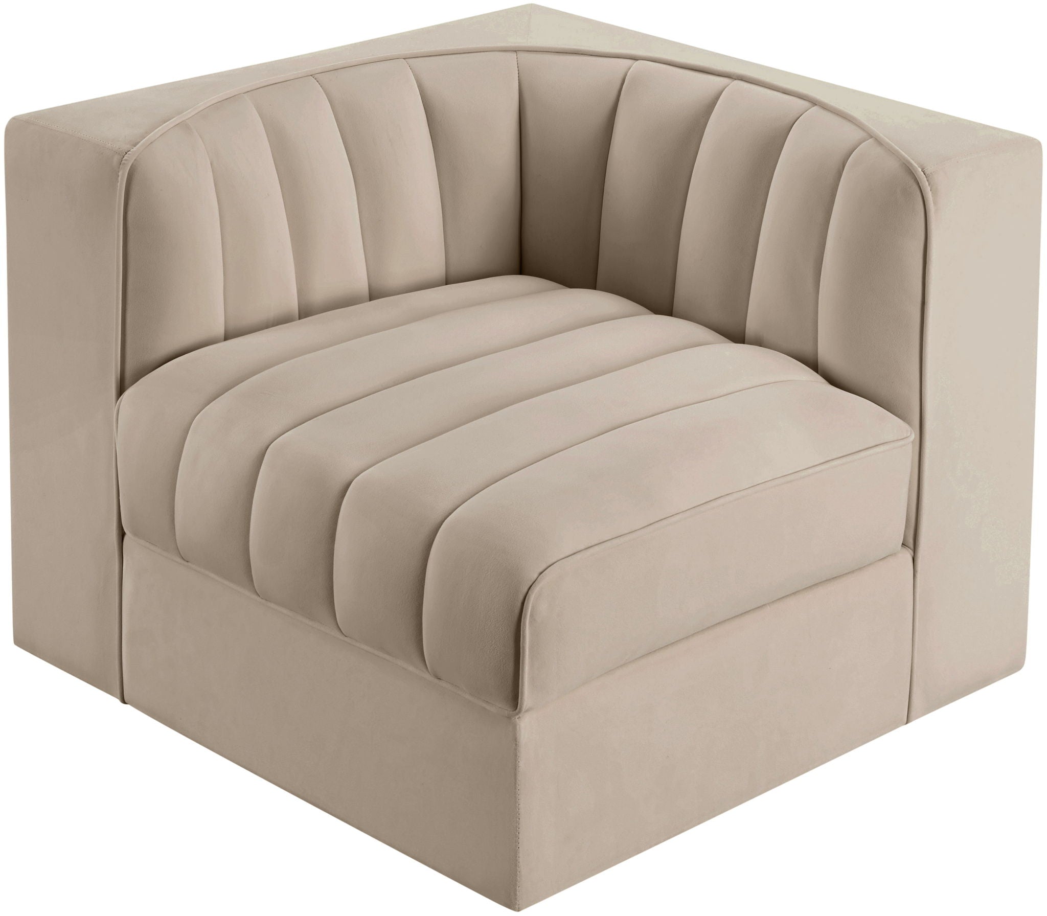 Rummi - Velvet Performance Fabric Upholstered Modular Corner Chair - Beige