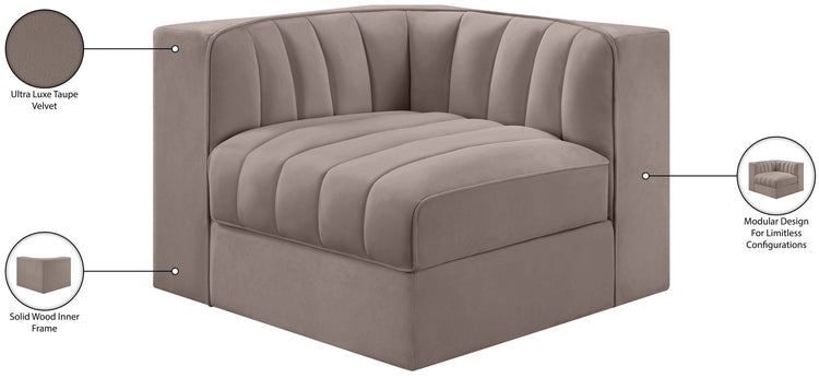 Rummi - Velvet Performance Fabric Upholstered Modular Corner Chair - Taupe