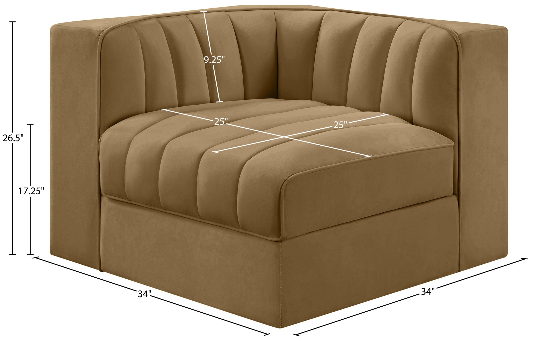 Rummi - Velvet Performance Fabric Upholstered Modular Corner Chair - Saddle