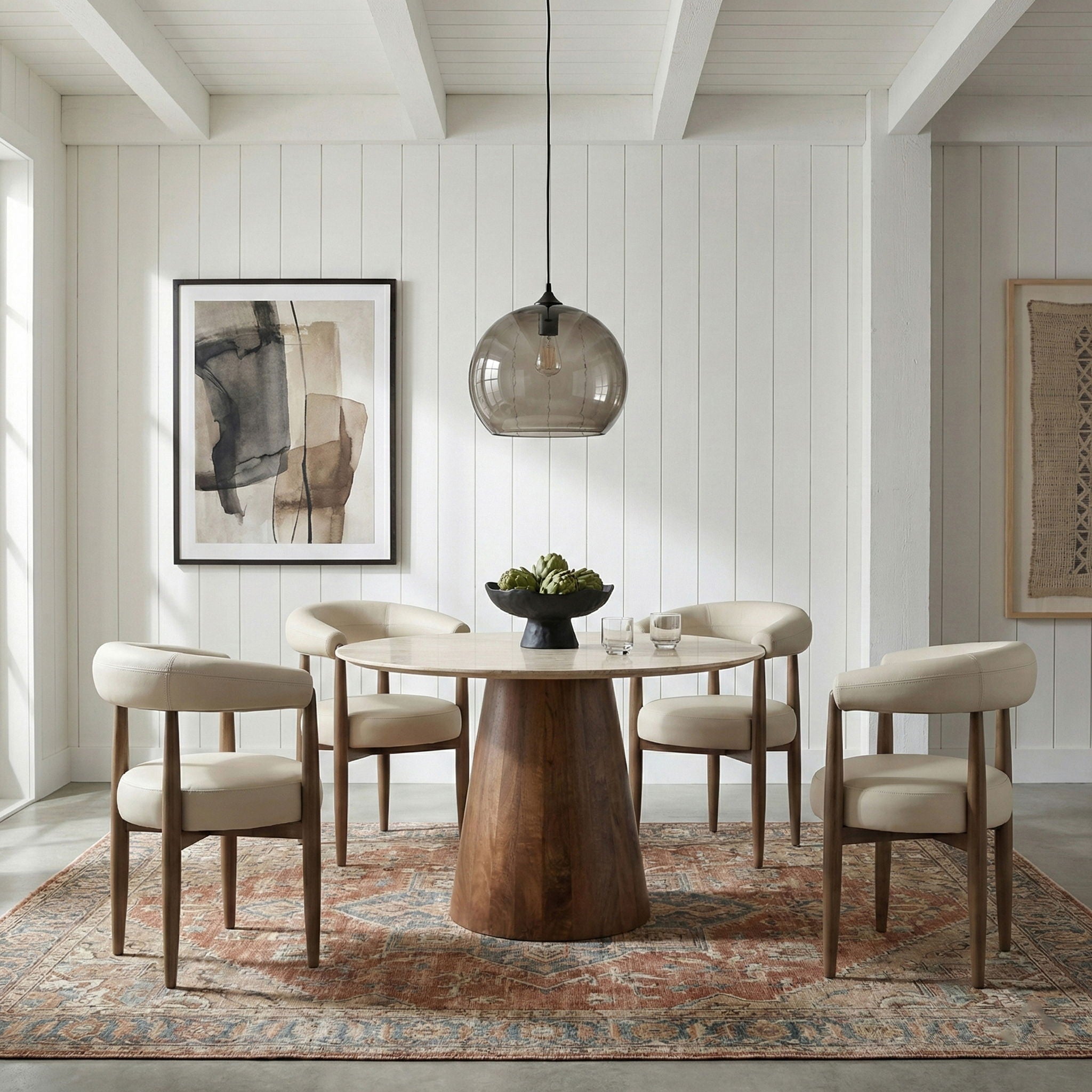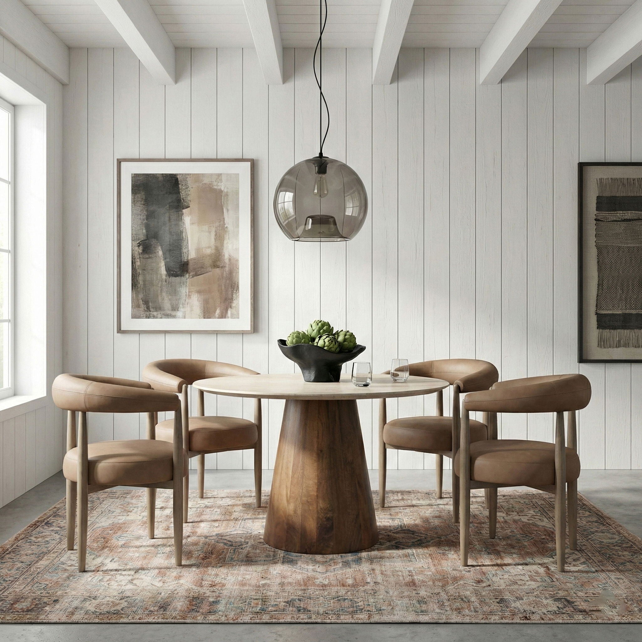 Sable - Vegan Leather Upholstered Dining Chair (Set of 2) - Cream / Painted Brown