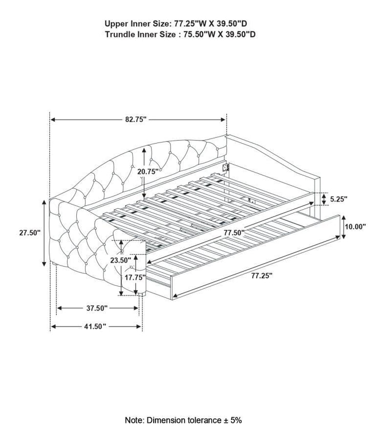 Sadie - Upholstered Twin Daybed With Trundle - Gray