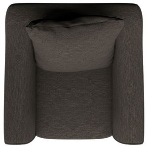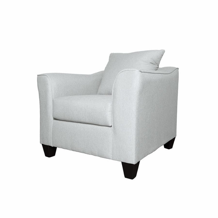 Beautifully styled, this chair fits in with a variety of seating ensembles. Flatter a contemporary space with a contoured silhouette. Flared arms add a chic touch. Wrapped in warm grey upholstery, it delivers a stylish updated palette. Make this chair a favorite venue for reading or watching TV.