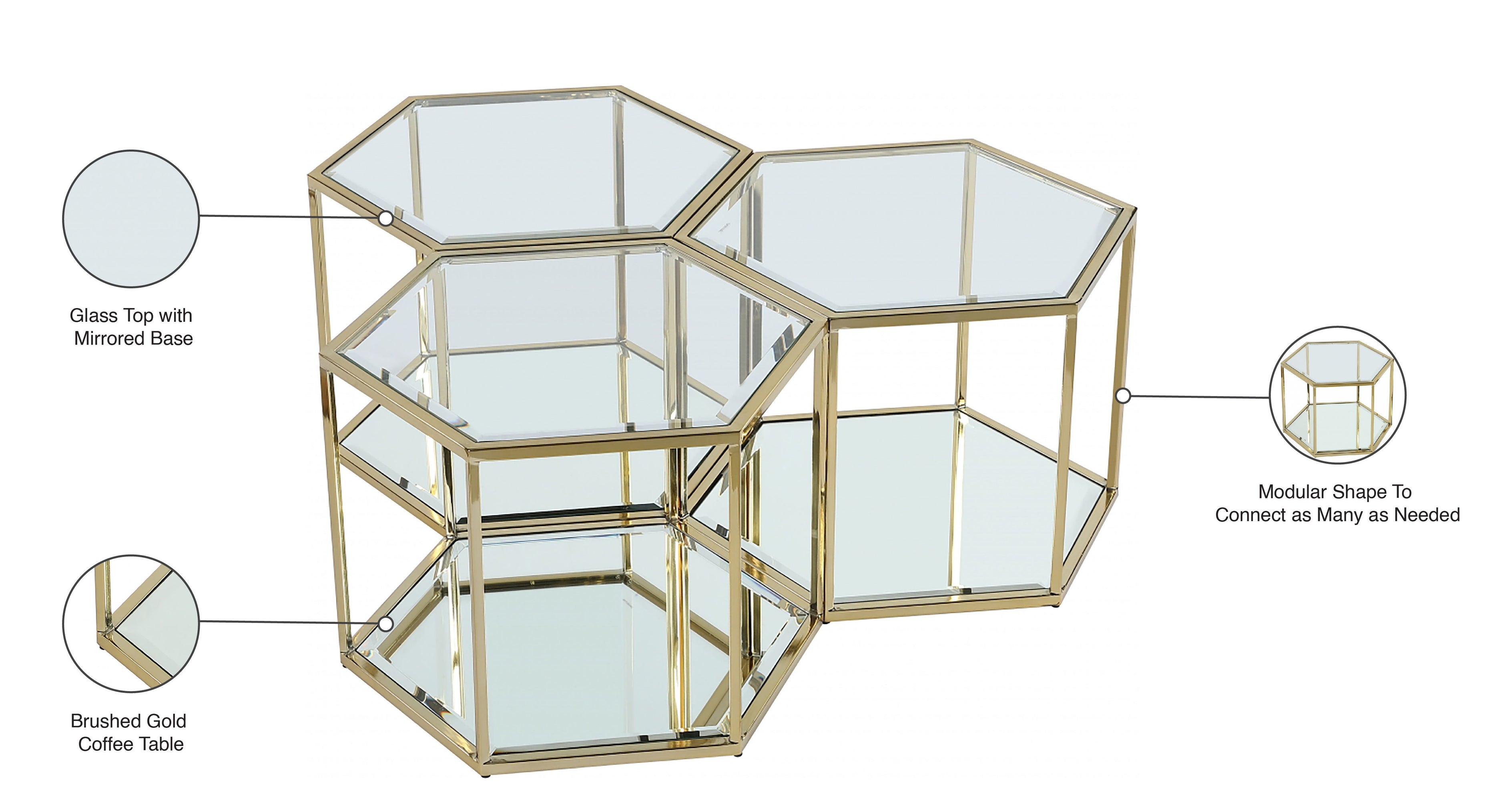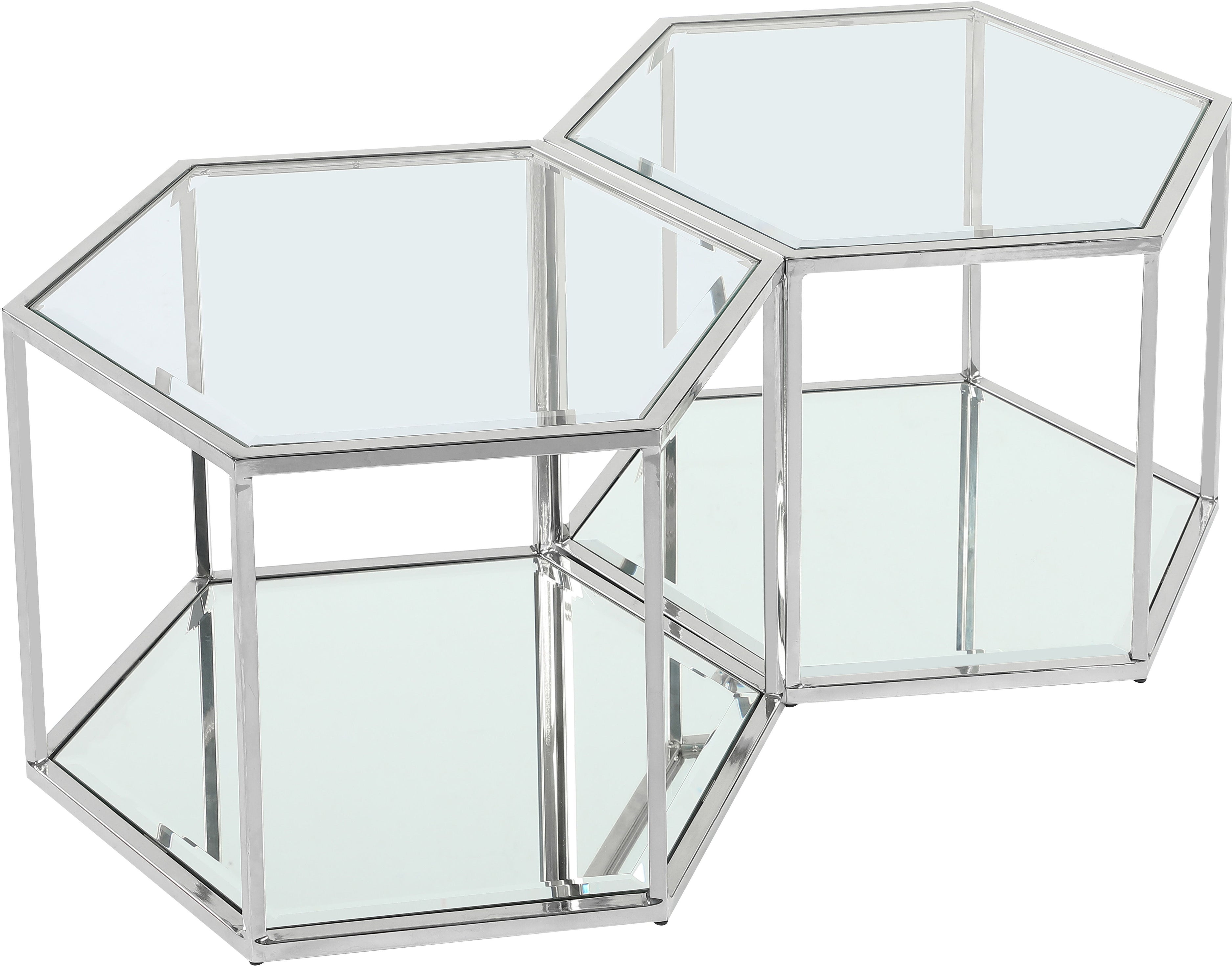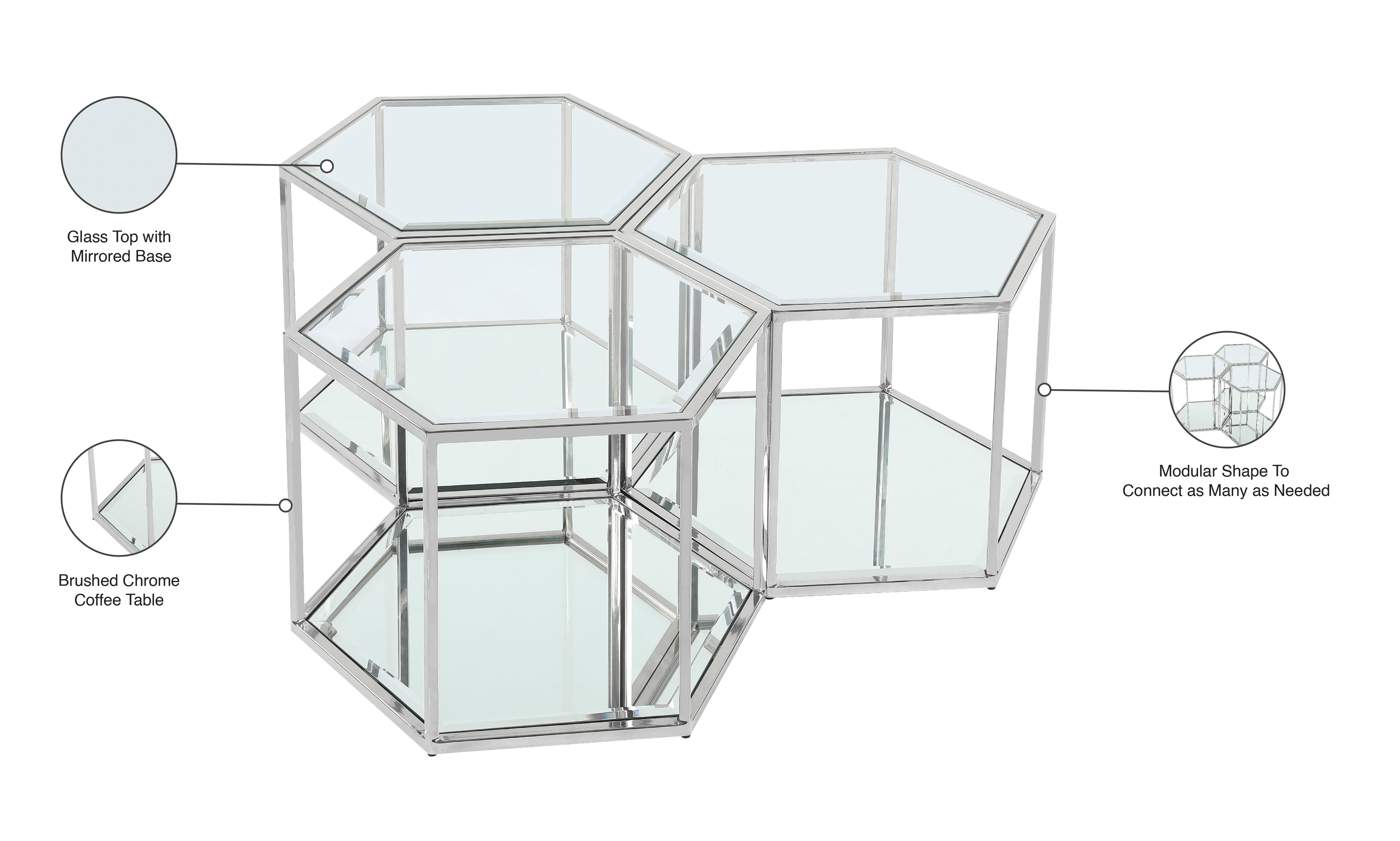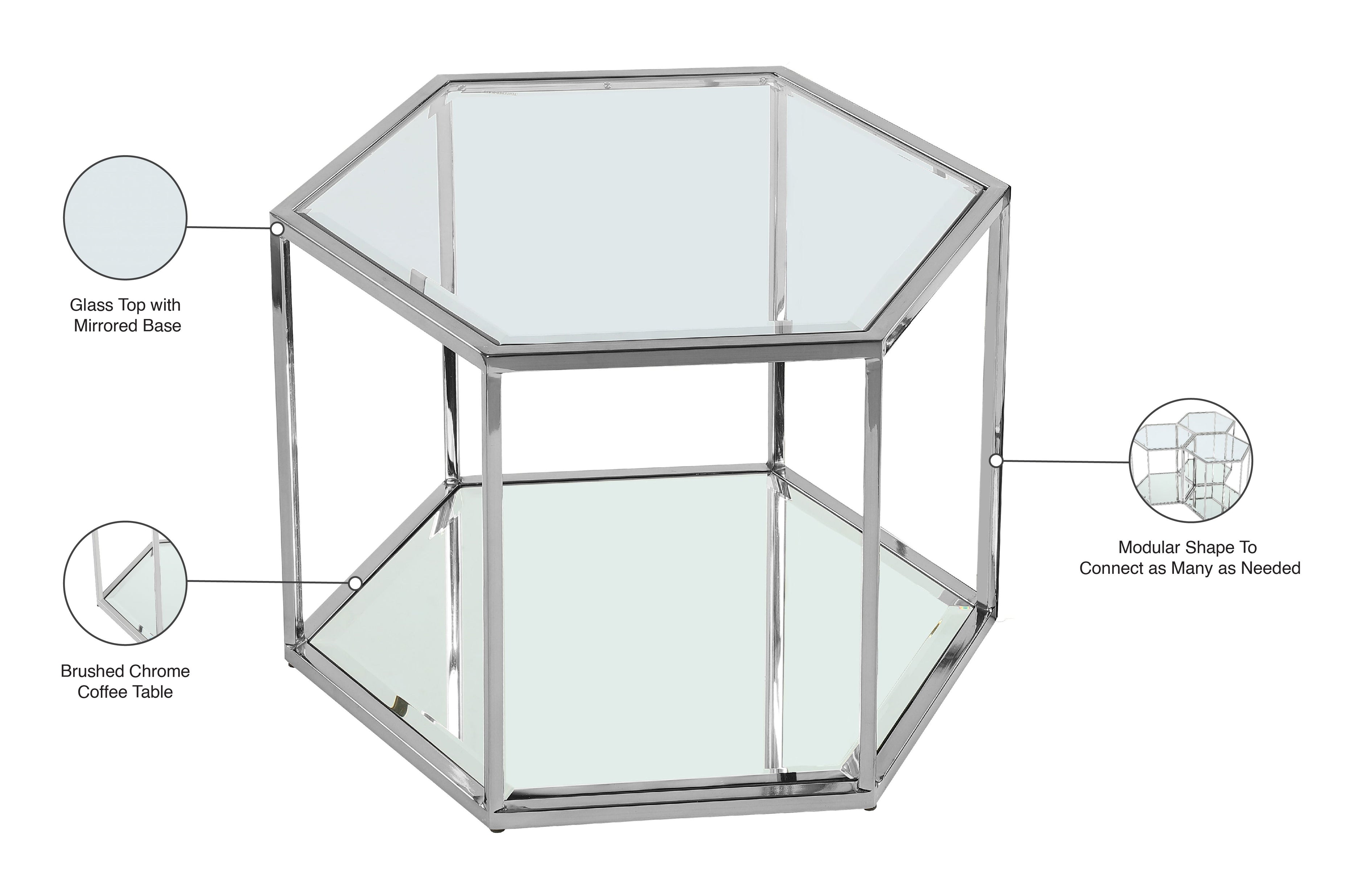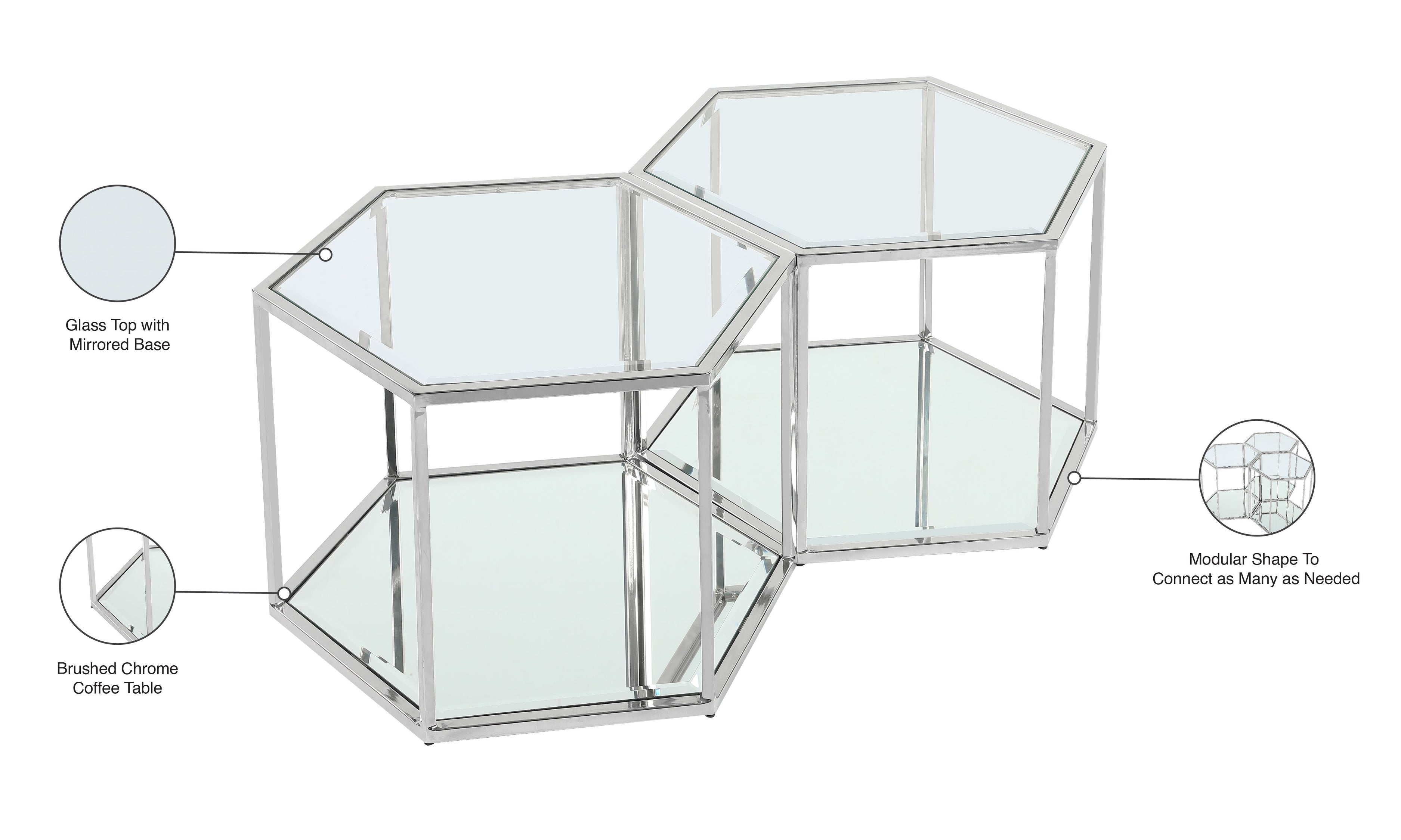 This SEI coffee table puts you in complete control of the look of your space. Use a single table for a small space, or put together two or more tables for an expanded look when game night requires extra room for you to spread out. The beautiful brushed frame holds a glass top with mirrored base and parallel mirrored bottom shelf. The modular design lets you connect as many tables as you need for a custom solution to your requirements.