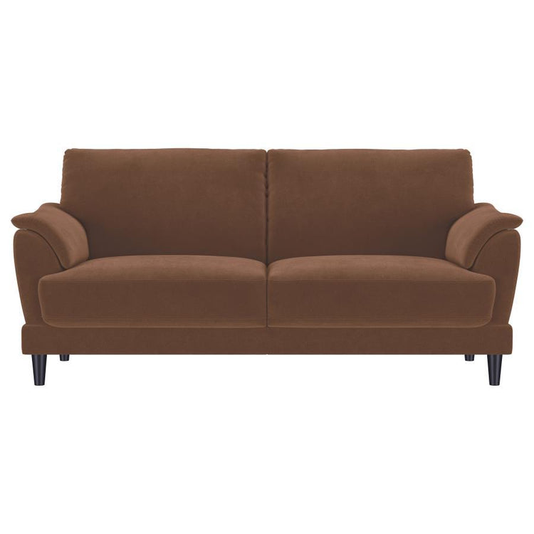 Selma - Velvet Upholstered Crescent Arm Loveseat - Rust