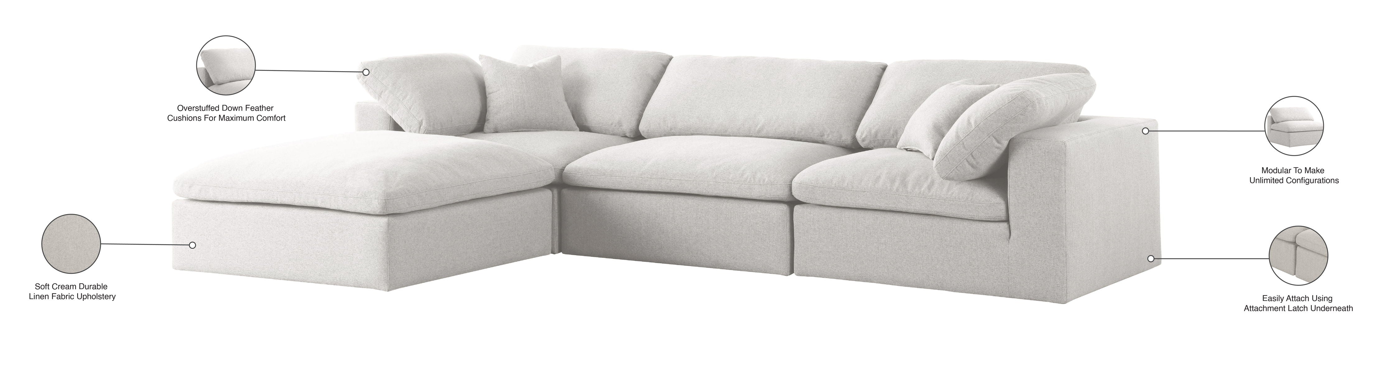 Serene - Linen Textured Fabric Deluxe Comfort Modular Sectional - Cream