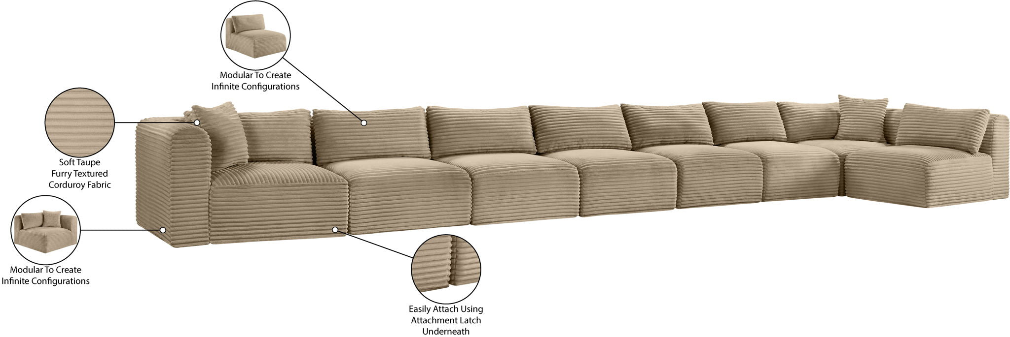 Shaggy Corduroy Performance Fabric Modular Sectional