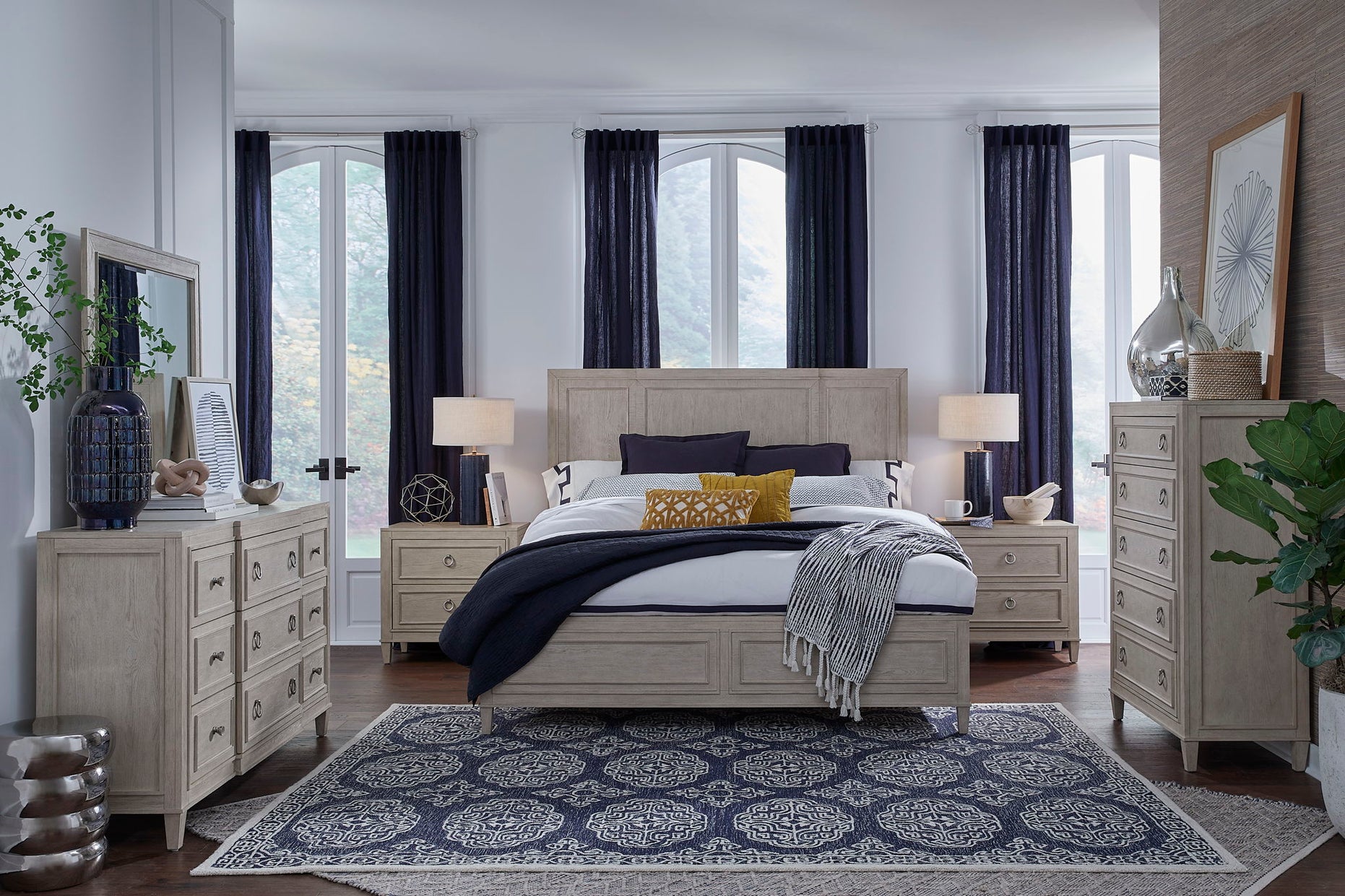 If you desire a sophisticated and contemporary bedroom furniture collection, the Sheridan Collection is a superb option. The collection boasts an elegant limestone finish and features stunning satin nickel knobs and ring pulls, which contribute to a sense of refinement and luxury. The casegoods are crafted with the utmost attention to detail, utilizing random cathedral featuring quartered knotty white oak veneer and hardwood solids, resulting in a durable and timeless aesthetic. The English dovetail drawers and sidemount ball bearing guides provide optimal functionality, while the bedside tables offer added convenience with their power supply and wire management capabilities. The bed offerings, including one panel bed and one panel bed with storage, provide a luxurious and comfortable place to rest. The Sheridan Collection represents the ultimate in refined taste and modern sophistication, offering an unparalleled aesthetic that will elevate the ambiance of any bedroom