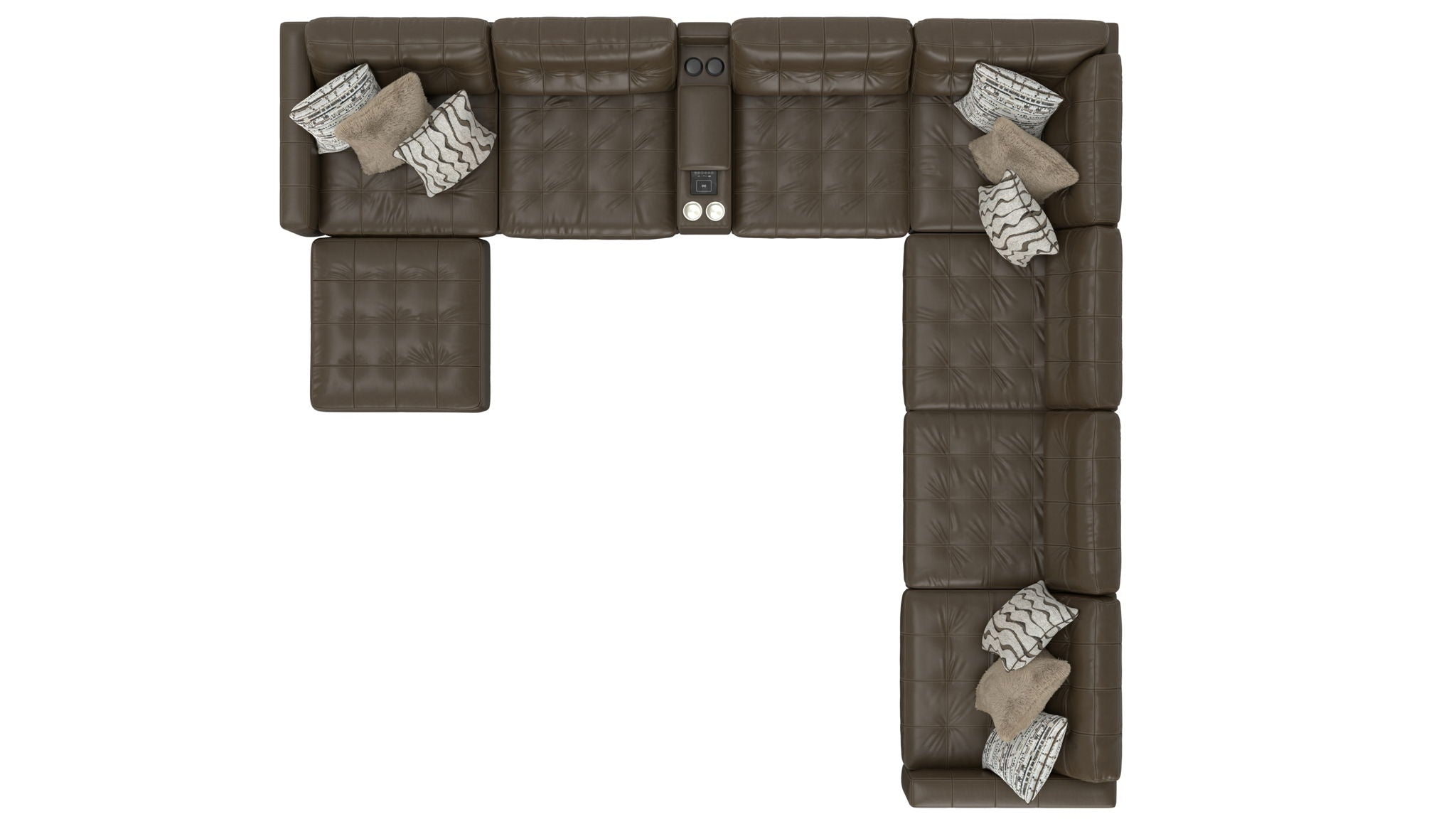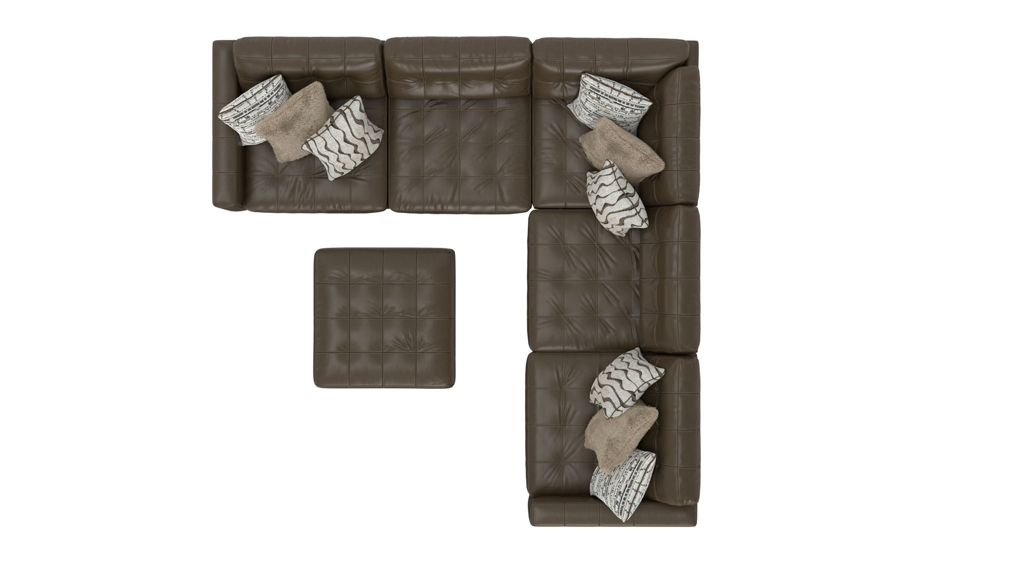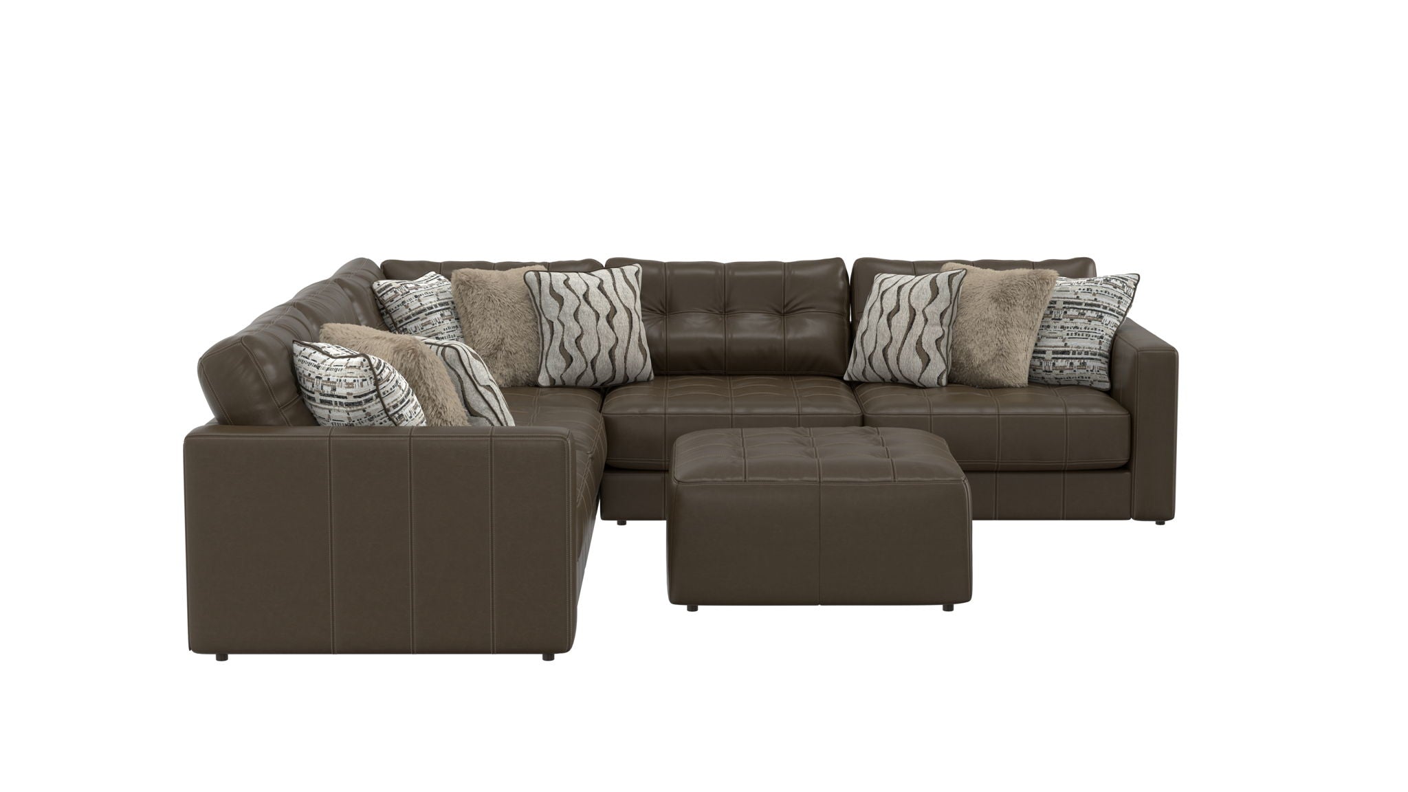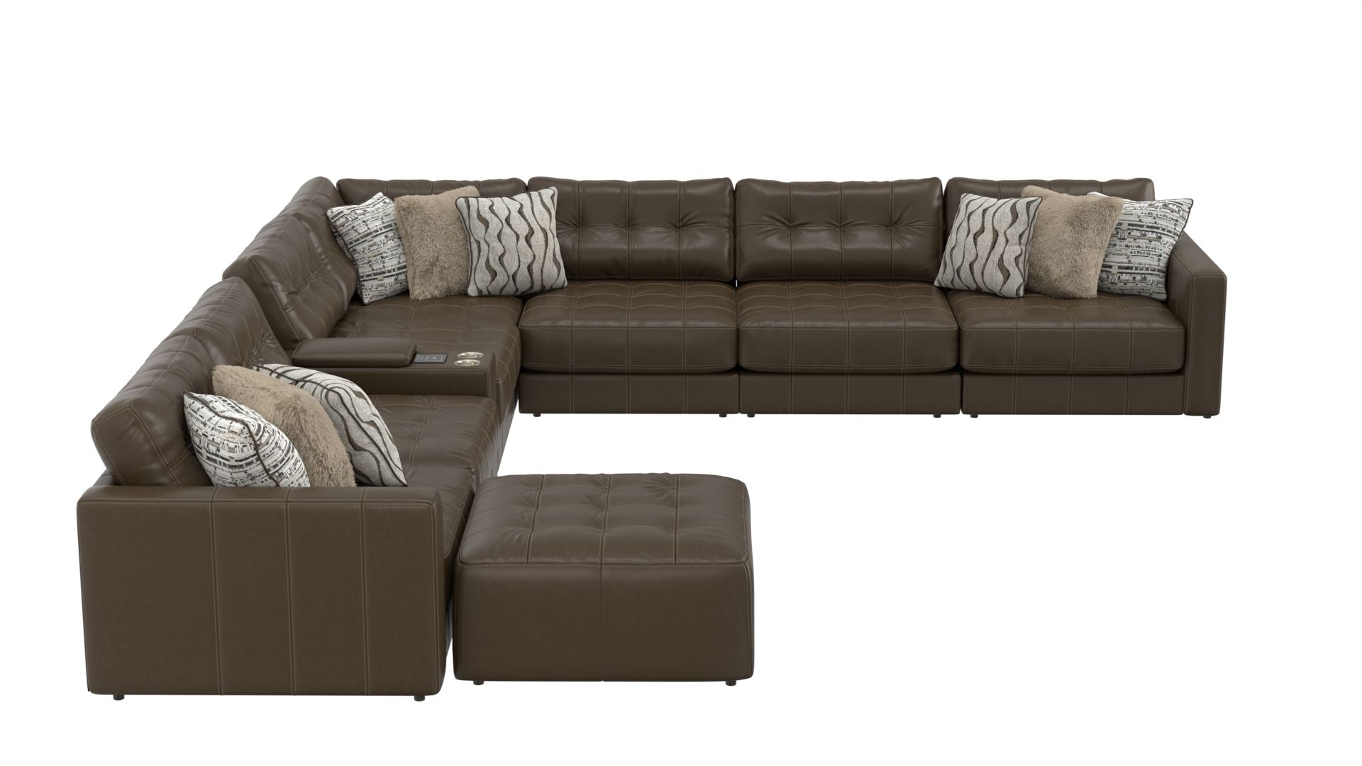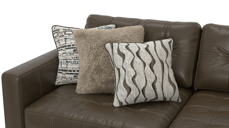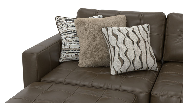 Siena is a Modular Sectional group with the ultimate comfort of our Cuddler Cushion. This Italian Leather application is accented with a mix of jumbo pillows in a variety of textures, while tufted backs and seats offer both comfort and style.