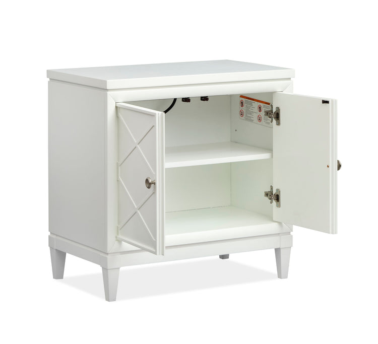 The Springhouse Collection is a refreshing take on cottage and coastal and and modern farmhouse design and featuring a clean Whisper White finish and refined Satin Nickel hardware. Its casegoods are thoughtfully crafted with decorative X molding details that add visual charm and while the small-scale nightstands are perfectly sized for second bedrooms or cozy spaces. The upholstered bed options provide a soft and inviting centerpiece and complementing the feminine touch of the delicate knobs. This collection offers a light and airy aesthetic that effortlessly enhances your bedroom and creating a serene and stylish retreat for your home.