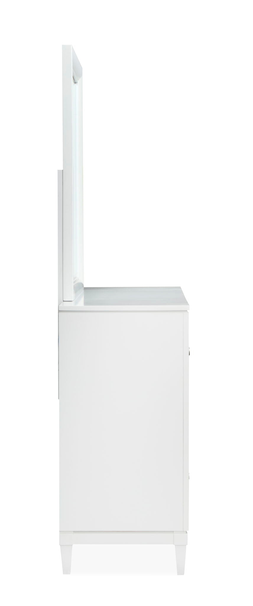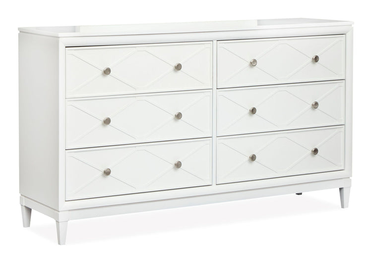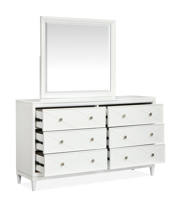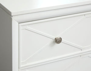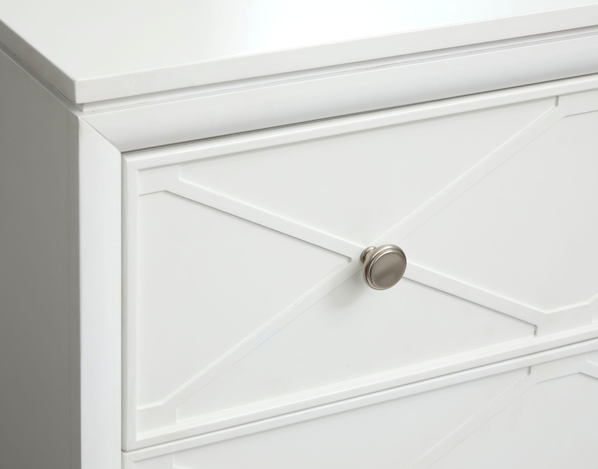 The Springhouse Collection is a refreshing take on cottage and coastal and and modern farmhouse design and featuring a clean Whisper White finish and refined Satin Nickel hardware. Its casegoods are thoughtfully crafted with decorative X molding details that add visual charm and while the small-scale nightstands are perfectly sized for second bedrooms or cozy spaces. The upholstered bed options provide a soft and inviting centerpiece and complementing the feminine touch of the delicate knobs. This collection offers a light and airy aesthetic that effortlessly enhances your bedroom and creating a serene and stylish retreat for your home.
