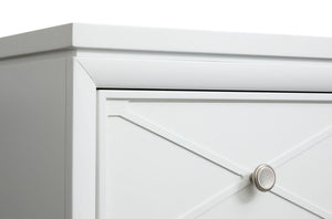 The Springhouse Collection is a refreshing take on cottage and coastal and and modern farmhouse design and featuring a clean Whisper White finish and refined Satin Nickel hardware. Its casegoods are thoughtfully crafted with decorative X molding details that add visual charm and while the small-scale nightstands are perfectly sized for second bedrooms or cozy spaces. The upholstered bed options provide a soft and inviting centerpiece and complementing the feminine touch of the delicate knobs. This collection offers a light and airy aesthetic that effortlessly enhances your bedroom and creating a serene and stylish retreat for your home.