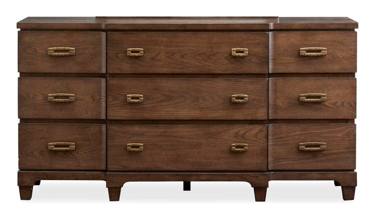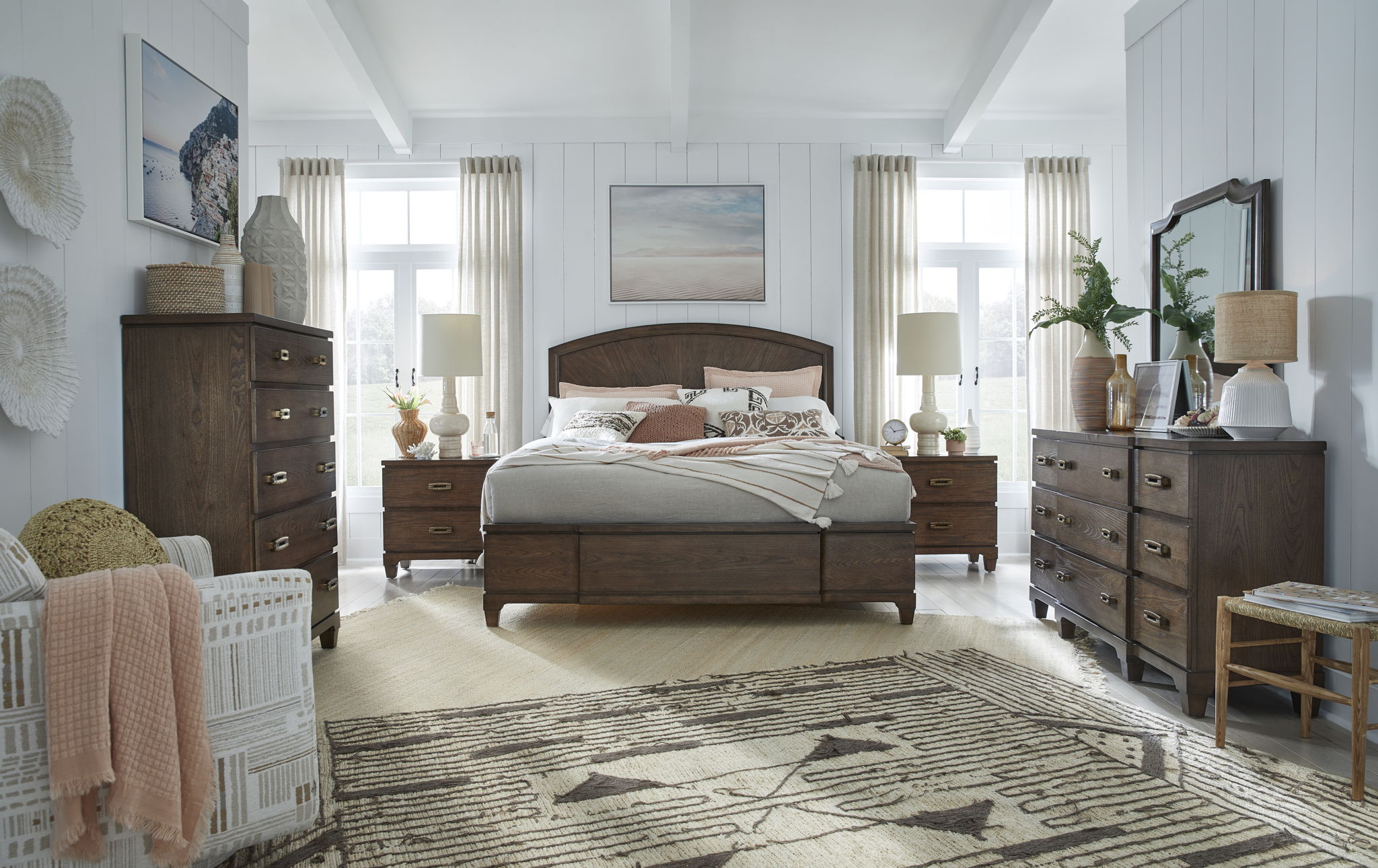Escape to a sophisticated bedroom retreat with the unique beauty of the Sugar Mill (Brown) bedroom collection. With timeless silhouettes and stunning natural woods and this bedroom group’s distinctive character is destined to inspire your room. Its signature bed options create a dramatic focal point while lending an element of luxury. A beautiful warm and Spiced Rum finish accentuates Sugar Mill’s classic forms while highlighting the exquisite grain patterns of its Random Cathedral Flip/ Slip Ash wood veneers and is accented with Weathered Brass hardware. Each stylish storage piece is thoughtfully designed to maximize space and make it easy to keep clothing and essentials organized. Superior craftsmanship and timeless design details ensure the furnishings in the Sugar Mill collection beautifully complement and elevate any bedroom aesthetic.