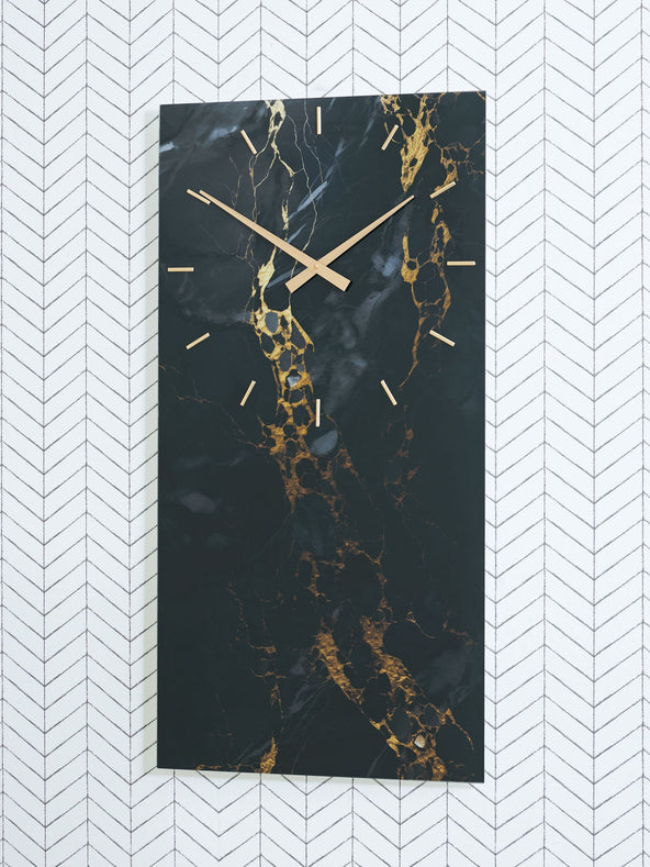 Take a turn toward the contemporary with this wall clock. Bold and beautiful, its printed glass pattern emulates the look of marble in a stunning take on everyday luxury. Hang this piece vertically or horizontally—either way, it makes a curated statement.