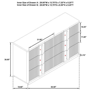 65.5"W x 19.0"D x 38.5"H - 229.28 lb