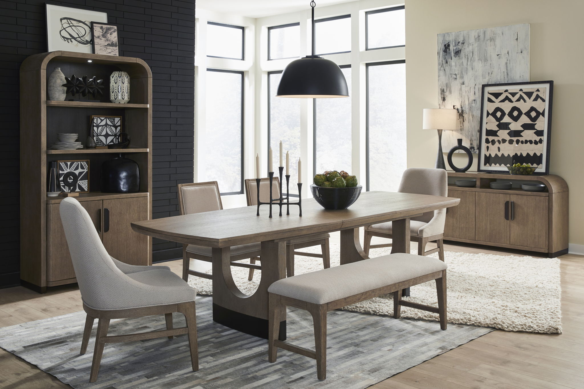 The Tristan dining collection makes every day dining an occasion with more style and less stress. Distinguished by its modern forms and Tristan breathes new life into timeless dining essentials. Its irresistible designs showcase a soft Honey Wheat finish over wirebrushed Quarter Oak Veneers and hardwood solids and creating a livable luxe vibe. Touches of Urban Bronze hardware—including metal caps on the table legs—add a touch of industrial character. Tristan’s display pieces blend form and function to bring order to any dining room while the collection’s dining tables and chair options deliver lasting comfort to encourage relaxed meals and leisurely conversation.