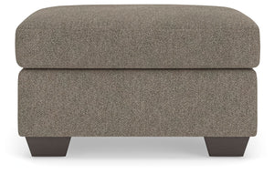 Transitional and right on trend. This ottoman's upholstery is a delightful change from the ordinary, with hints of soft brown giving the gray hue added depth. Whether you're hosting friends and family or relaxing solo, this ottoman invites homey, comfortable character into your space.