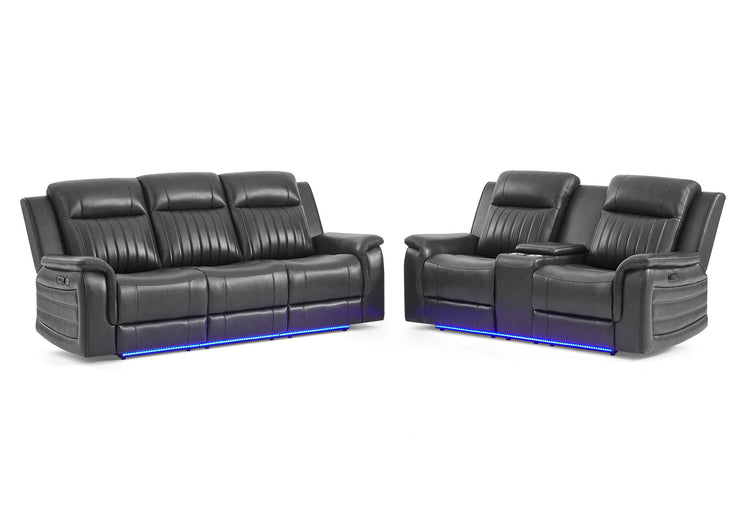 U8879 - 2 Piece Living Room Set (Power Reclining Sofa With LED And Global Surround System And Power Console Reclining Loveseat) - Charcoal