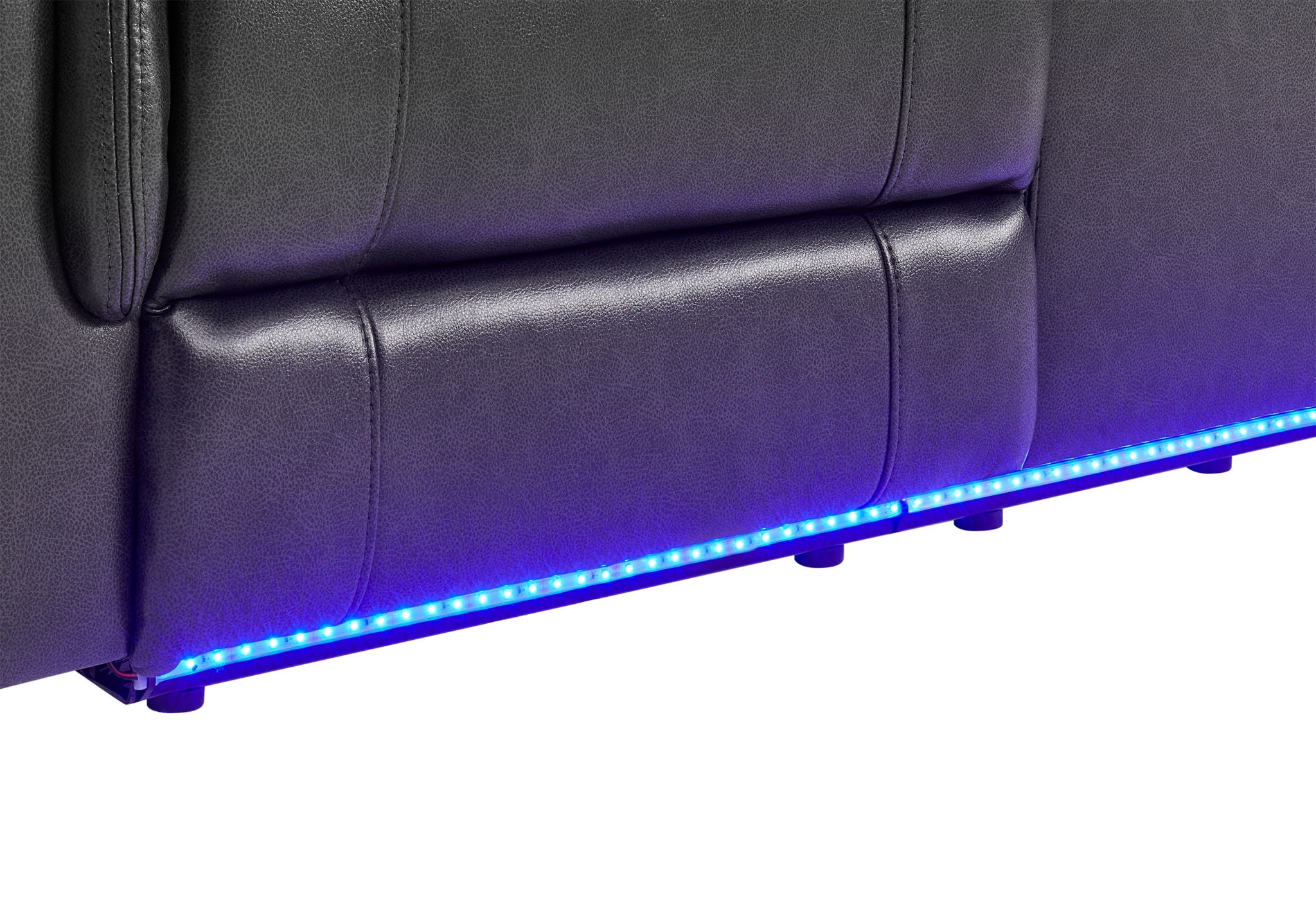 The U8879 Upholstery Set by Global Furniture USA blends luxurious comfort with cutting-edge technology for the ultimate home entertainment experience. Upholstered in a rich blanche charcoal with a contrasting black welt, this three-piece collection is as stylish as it is functional. All pieces feature power reclining and integrated LED lighting, bringing a modern edge to your living space. The power reclining sofa and loveseat take things further with multi-color LED strips that sync with the built-in Global surround sound system, creating an immersive viewing and listening experience. The loveseat also features a powerful audio subwoofer for deep, theater-quality sound. Completing the set, the recliner features power motion and a sleek blue LED light strip, offering both comfort and contemporary design. With its modern styling, plush upholstery, and high-tech features, the U8879 Upholstery Set transforms your living room into a true entertainment hub.