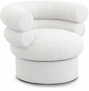 Create instant visual interest and add a comfy seating option to any space with this Valentina linen textured fabric swivel accent chair. The stacked back design is fun and modern, giving your room an upbeat (and stylish) vibe. This chair features mainly fabric with white weave details, thanks to its rich linen textured fabric upholstery. Deep channel tufting adds to its overall comforting look and feel in your living room, office, bedroom, or elsewhere.