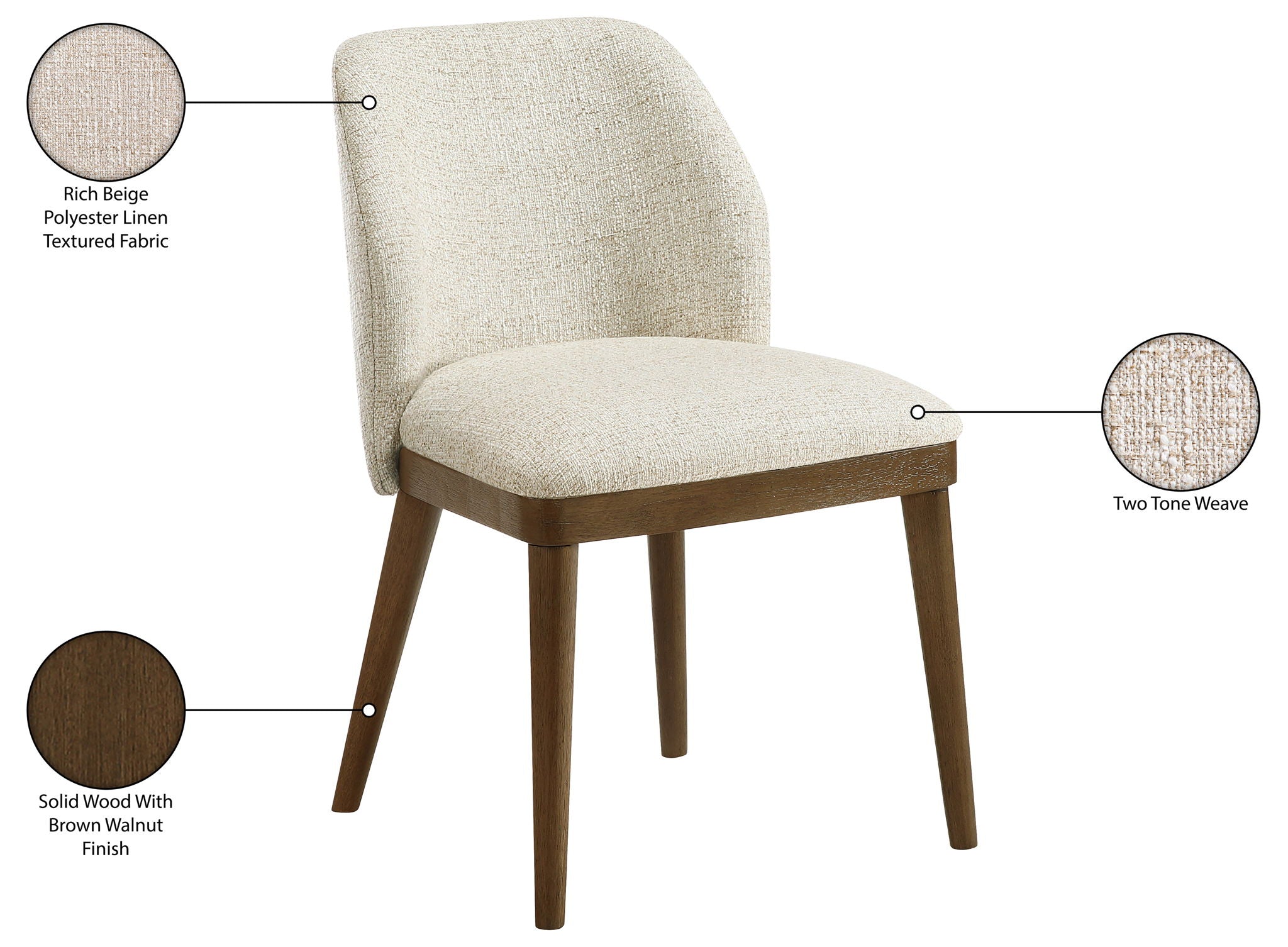 Valeo - Linen Textured Fabric Upholstered Dining Chair (Set of 2) - Beige / Painted Brown
